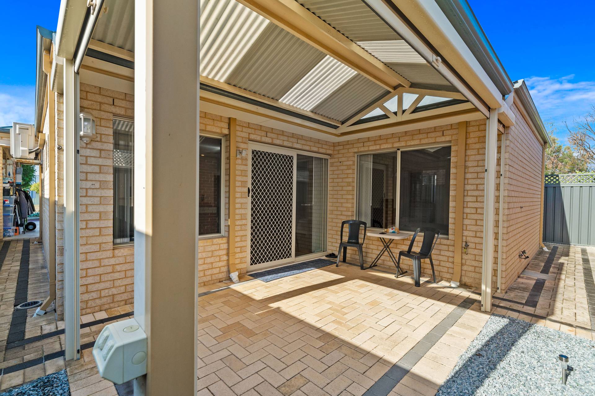 * Outdoor Living: Paved courtyard with a shaded patio perfect for alfresco dining.