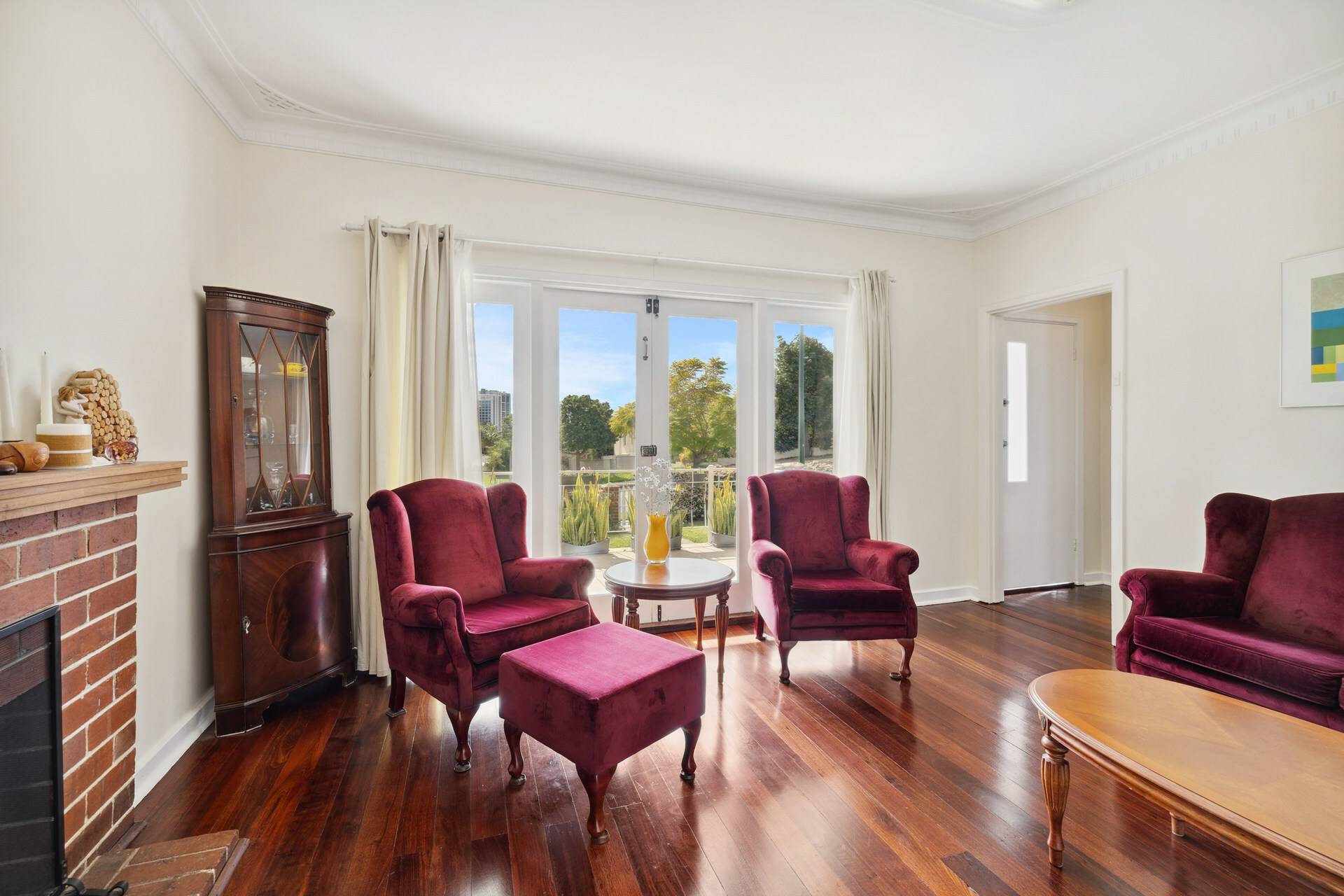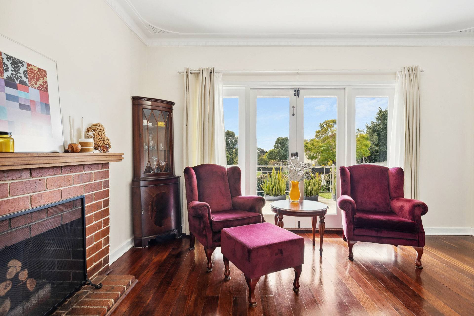 * Spacious front lounge, complete with functional open fireplace & stunning French doors to the veranda