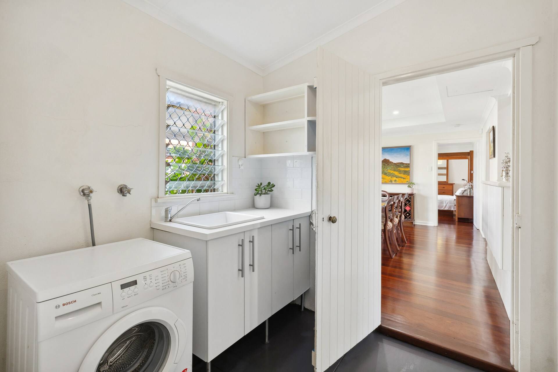 * Renovated laundry with storage cupboards and trough