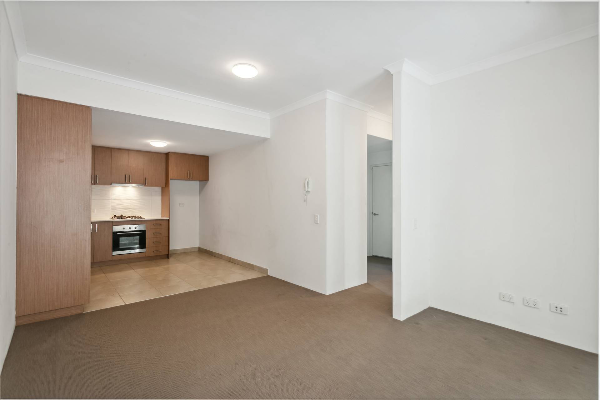 The open plan living and dining area, featuring plush carpets, flows effortlessly into the stylish kitchen with sleek stone benchtops, stainless steel appliances, gas cooking and a dishwasher recess.