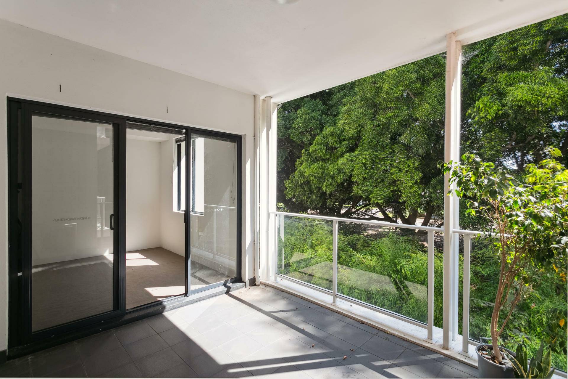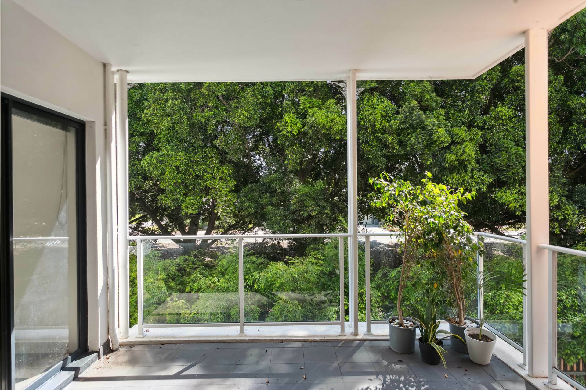 * Spacious balcony with lovely, tree-lined views