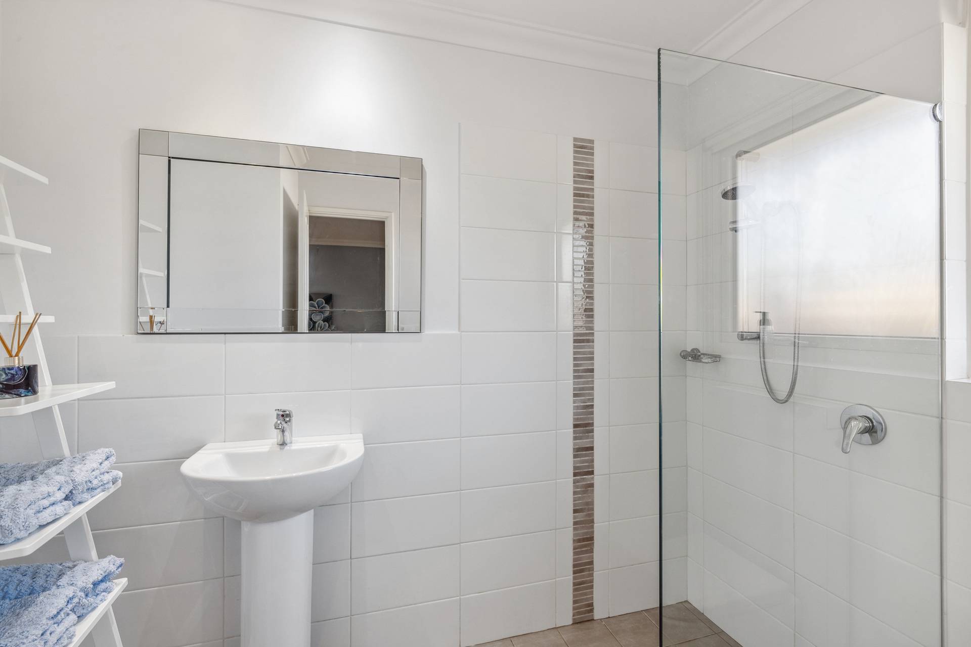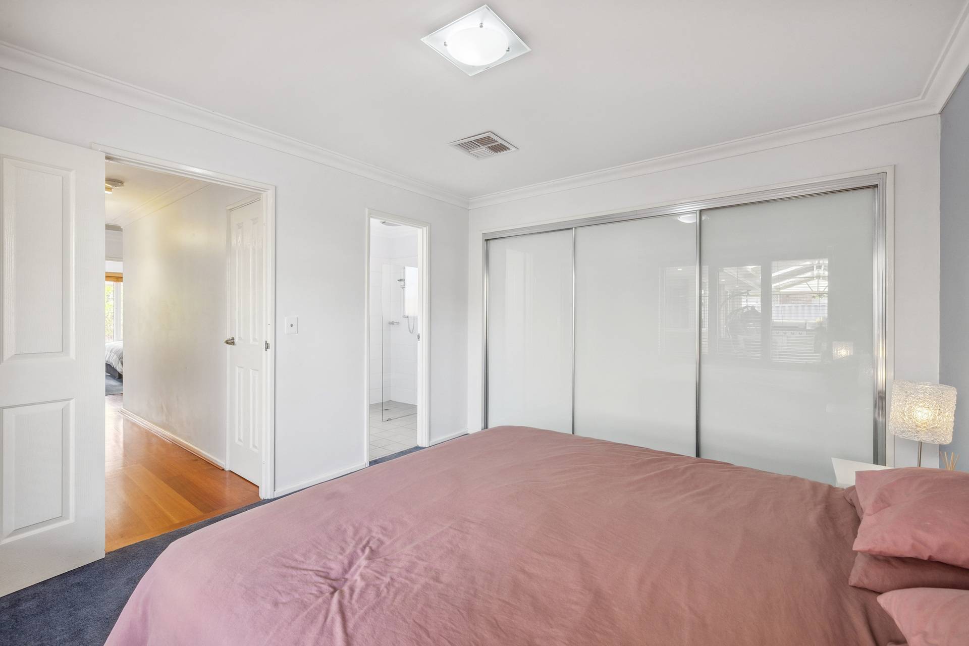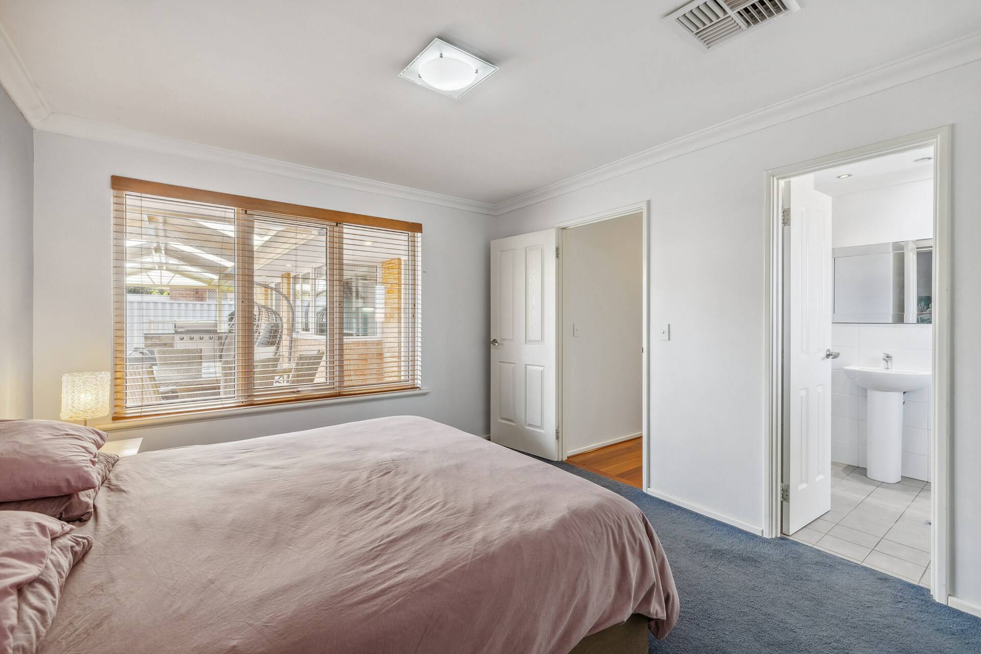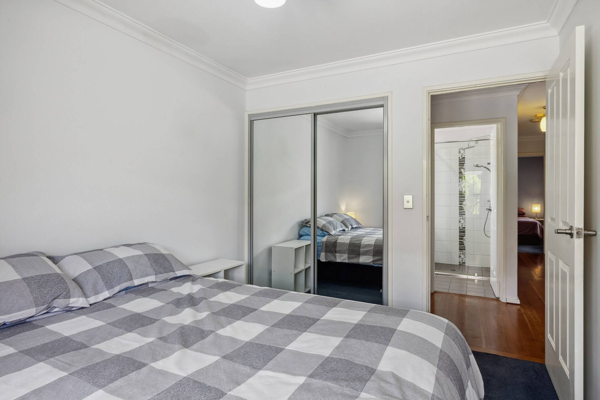 The master suite is a spacious sanctuary with a walk-in robe and ensuite, providing a serene escape after a busy day. Two well-sized secondary bedrooms, each with built-in robes, are flanked by the primary bathroom.