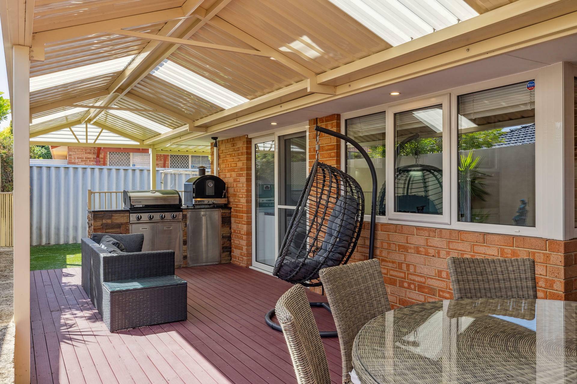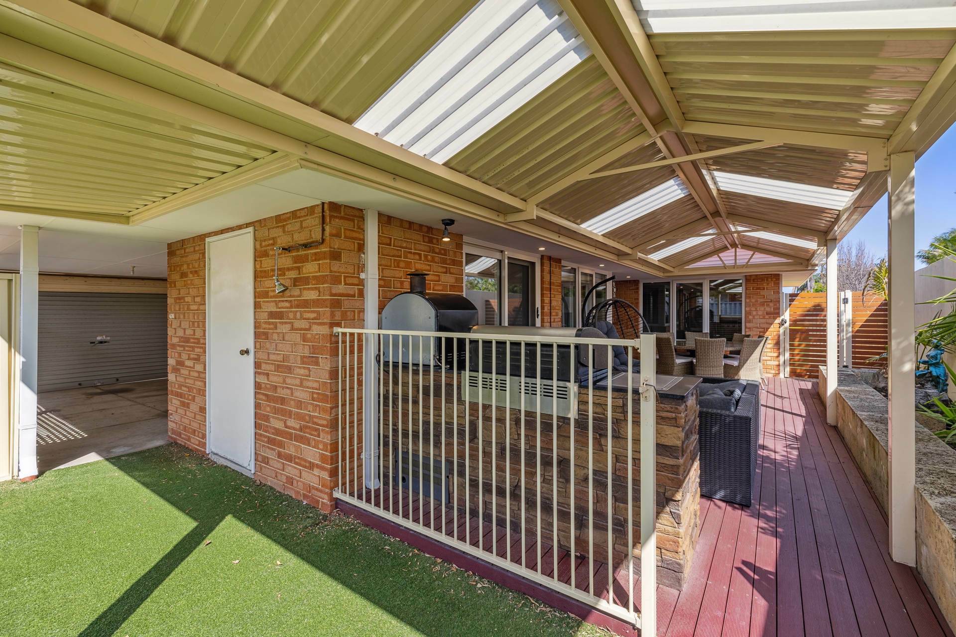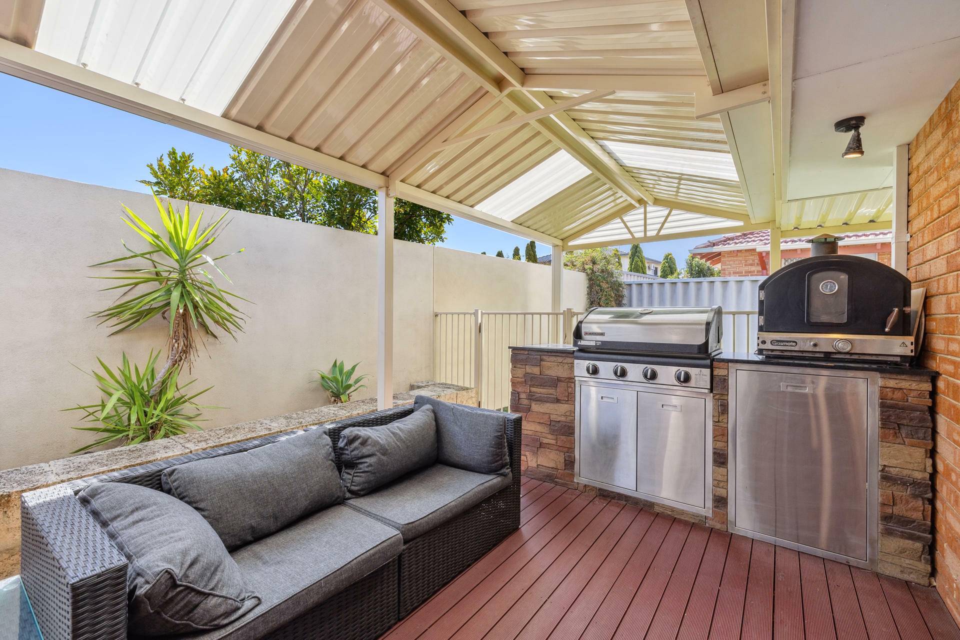 Step outside to a delightfully private, decked courtyard complete with gabled pergola and built in BBQ, ideal for enjoying the great outdoors.