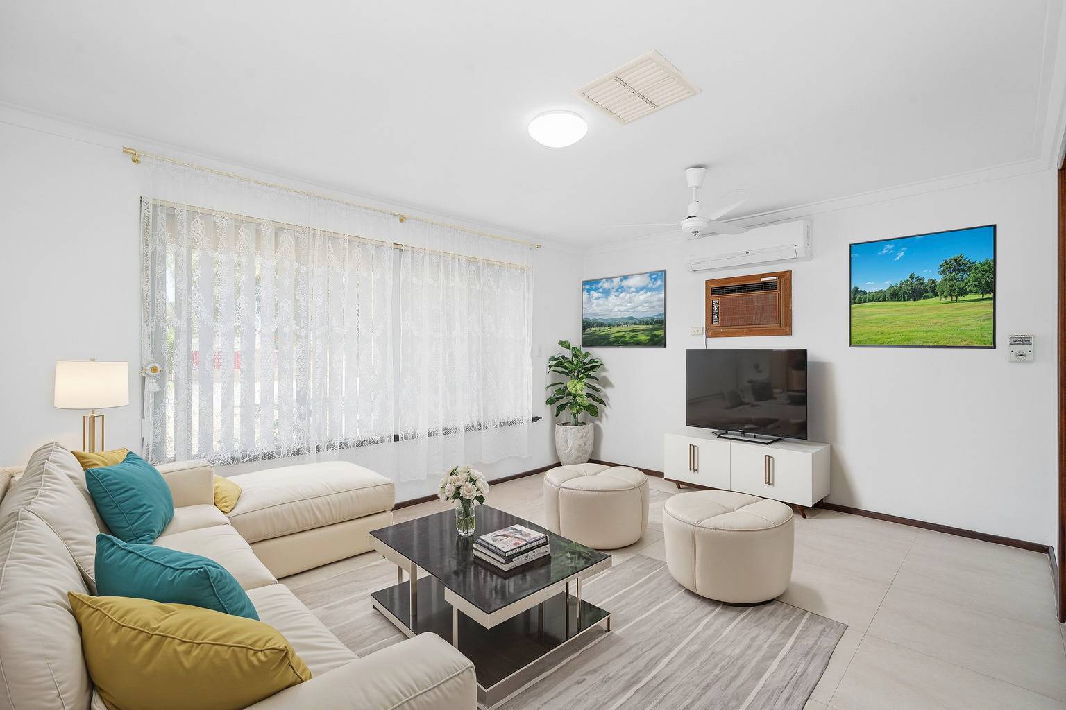 * Ducted evaporative air conditioning + reverse cycle split system in lounge (wall box unit Sold "AS IS")