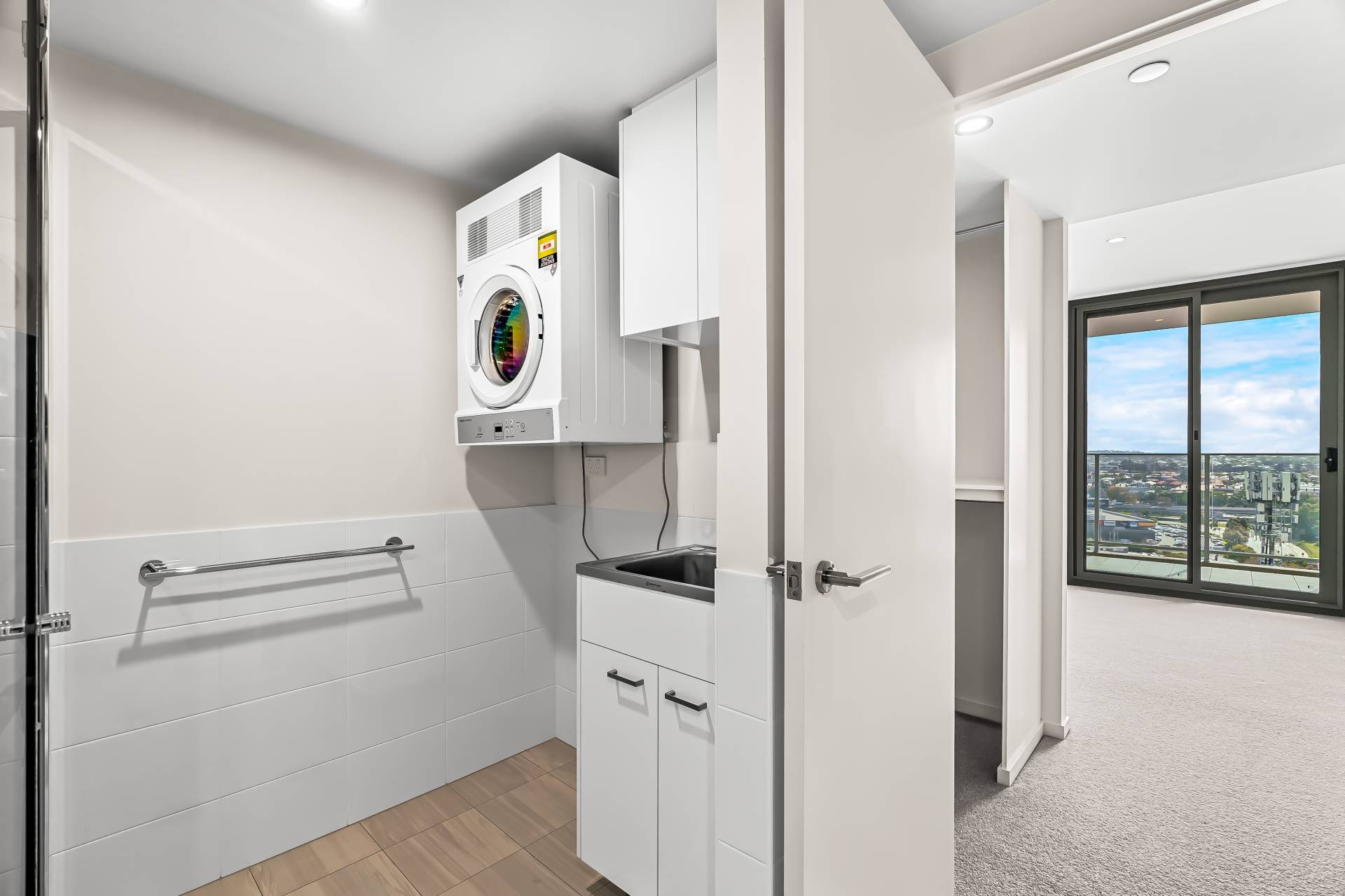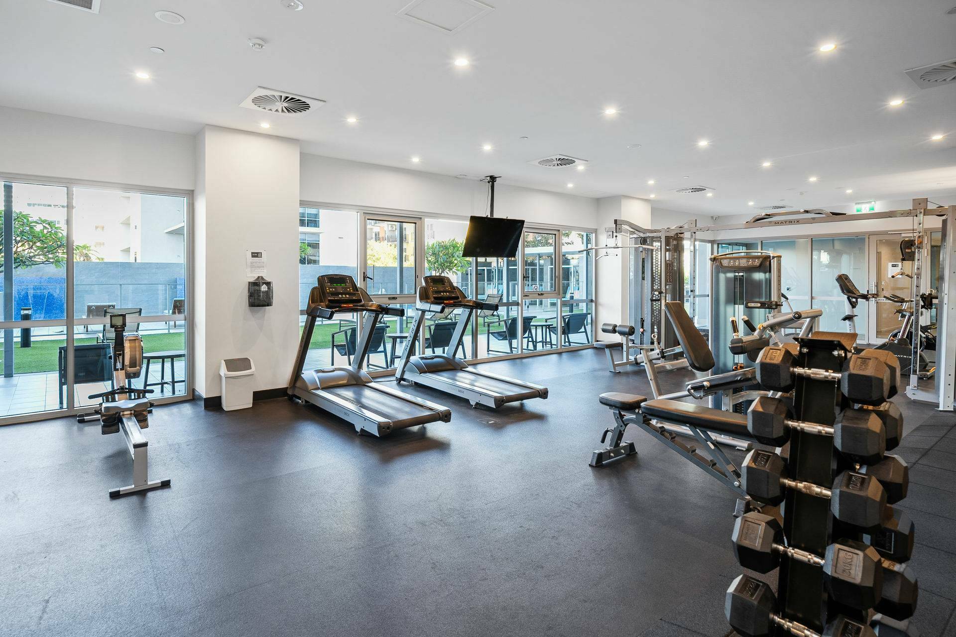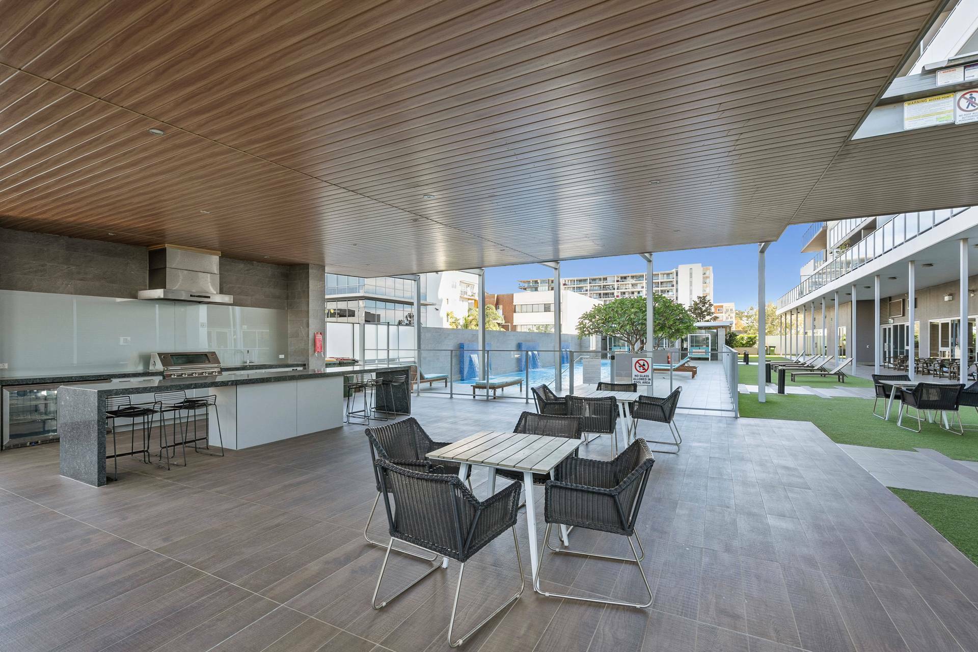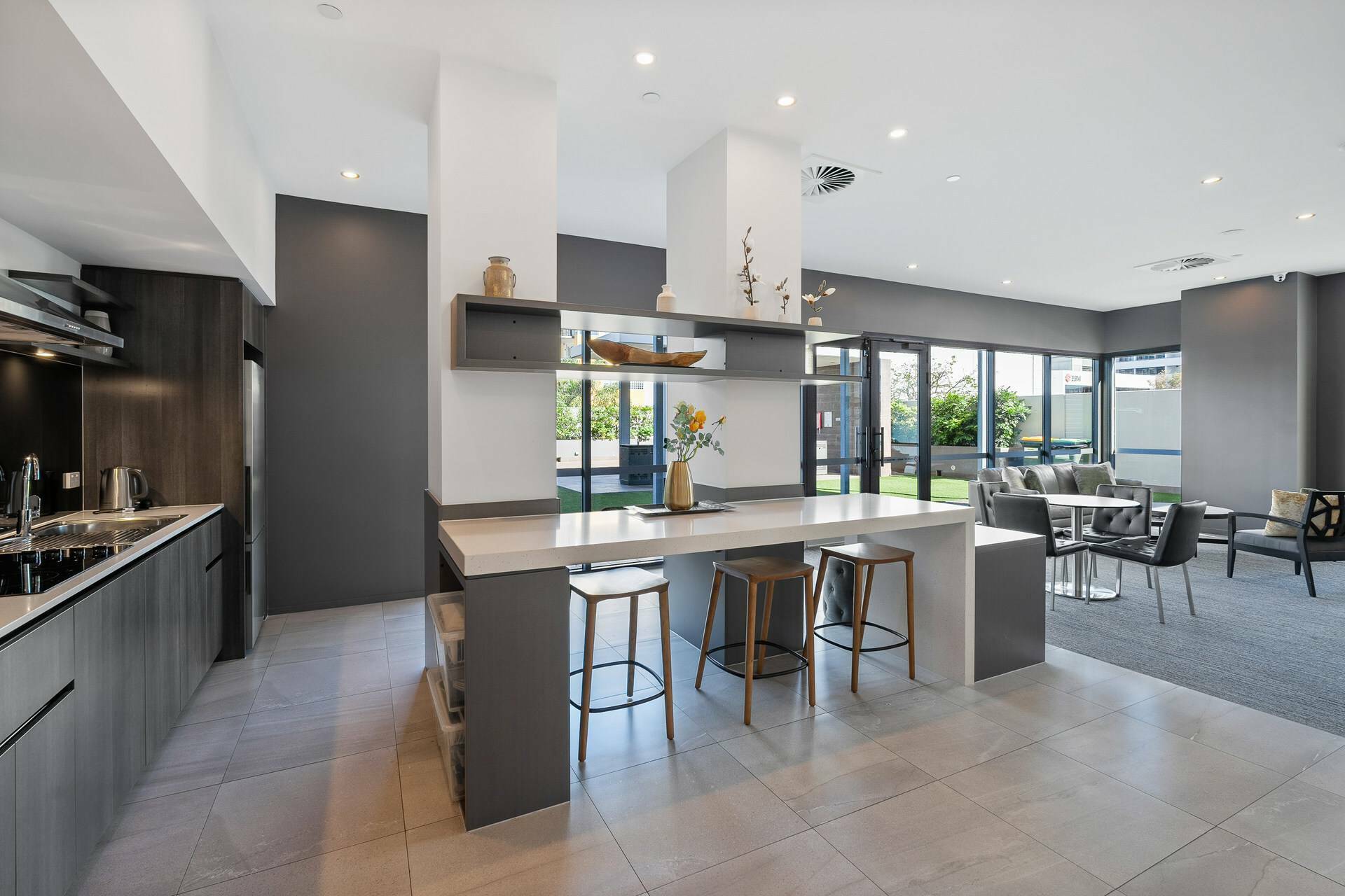 Aire Apartments is a sanctuary of luxury living with its world class amenities where you can dive into the 22m solar-heated pool, relax in the rooftop sky lounge and garden or enjoy the outdoor dining area equipped with gas BBQs. The complex also features a games room, fully equipped gym and a timber-lined sauna for ultimate relaxation.