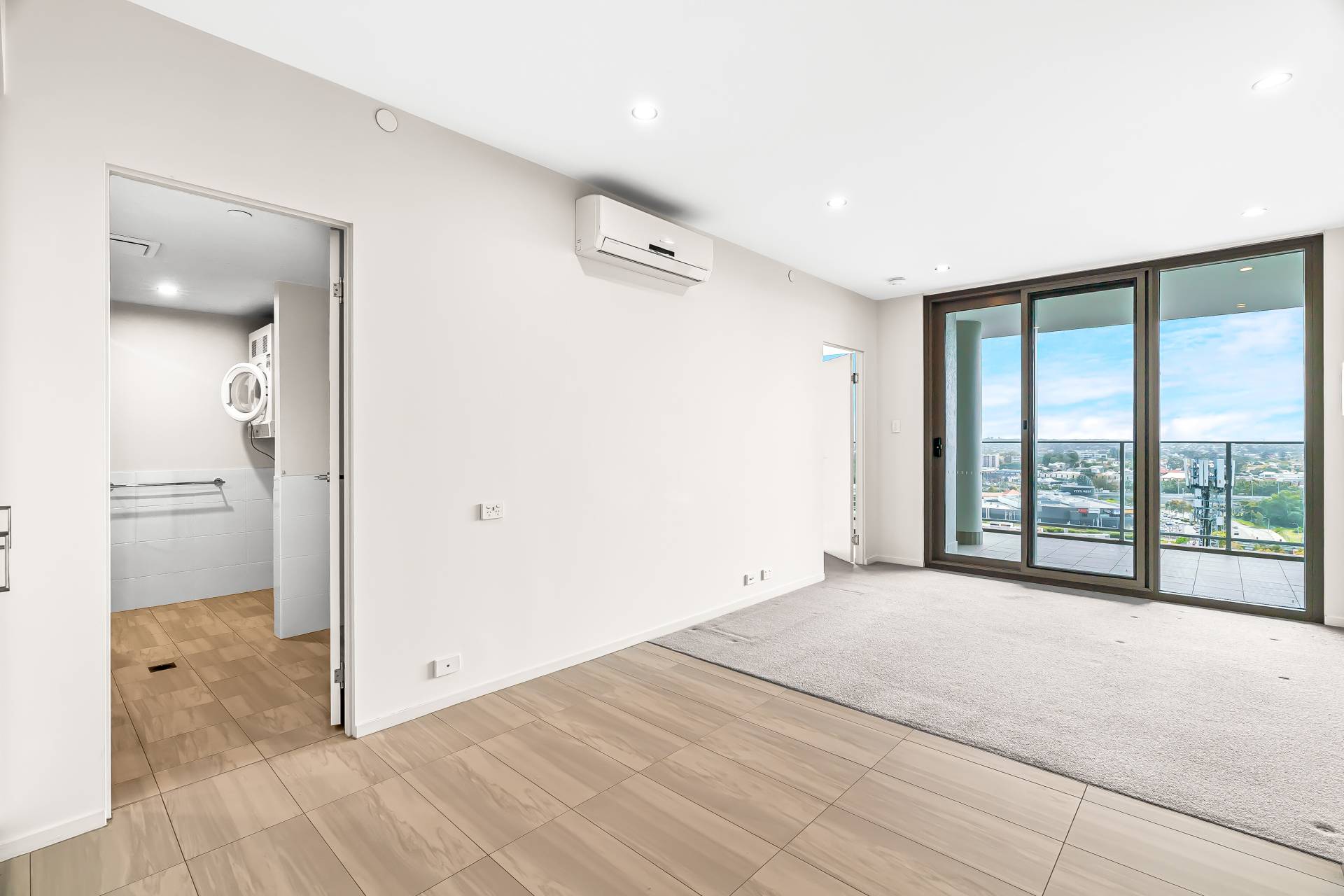 The open plan living area, enhanced with reverse cycle air conditioning, provides the perfect setting for entertaining or relaxing in year-round comfort. Premium fittings and fixtures elevate the apartment's design, while the 12th-floor position offers sweeping, panoramic views.