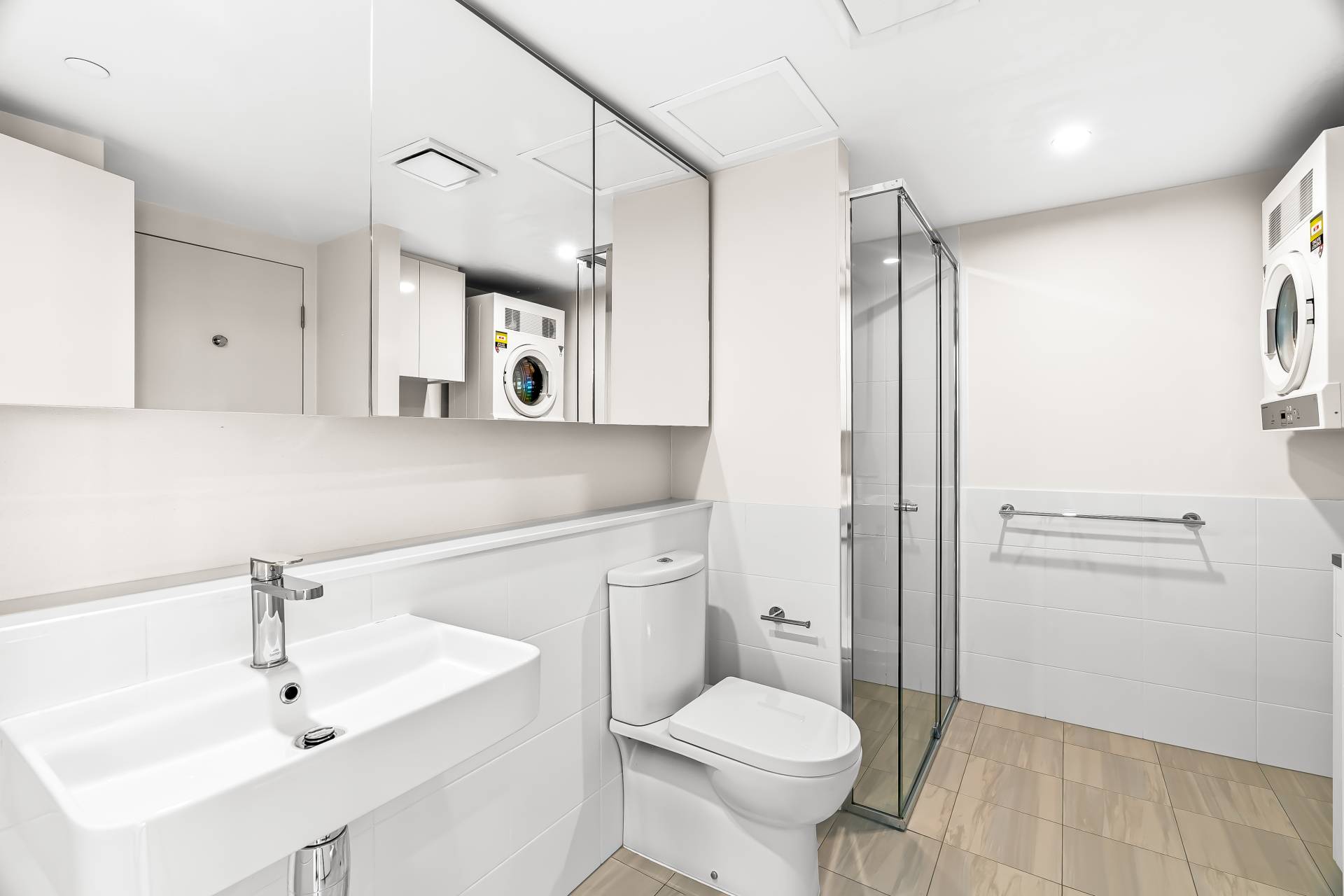 This stylish apartment showcases a sleek design and top tier finishes. The spacious his and hers walk-in robe leads to a dual entry/semi-ensuite, complete with a cleverly concealed laundry. The kitchen will delight any home chef, with its soft-close cabinetry, chic glass splashbacks, reconstituted stone benchtops, and premium Bosch appliances.