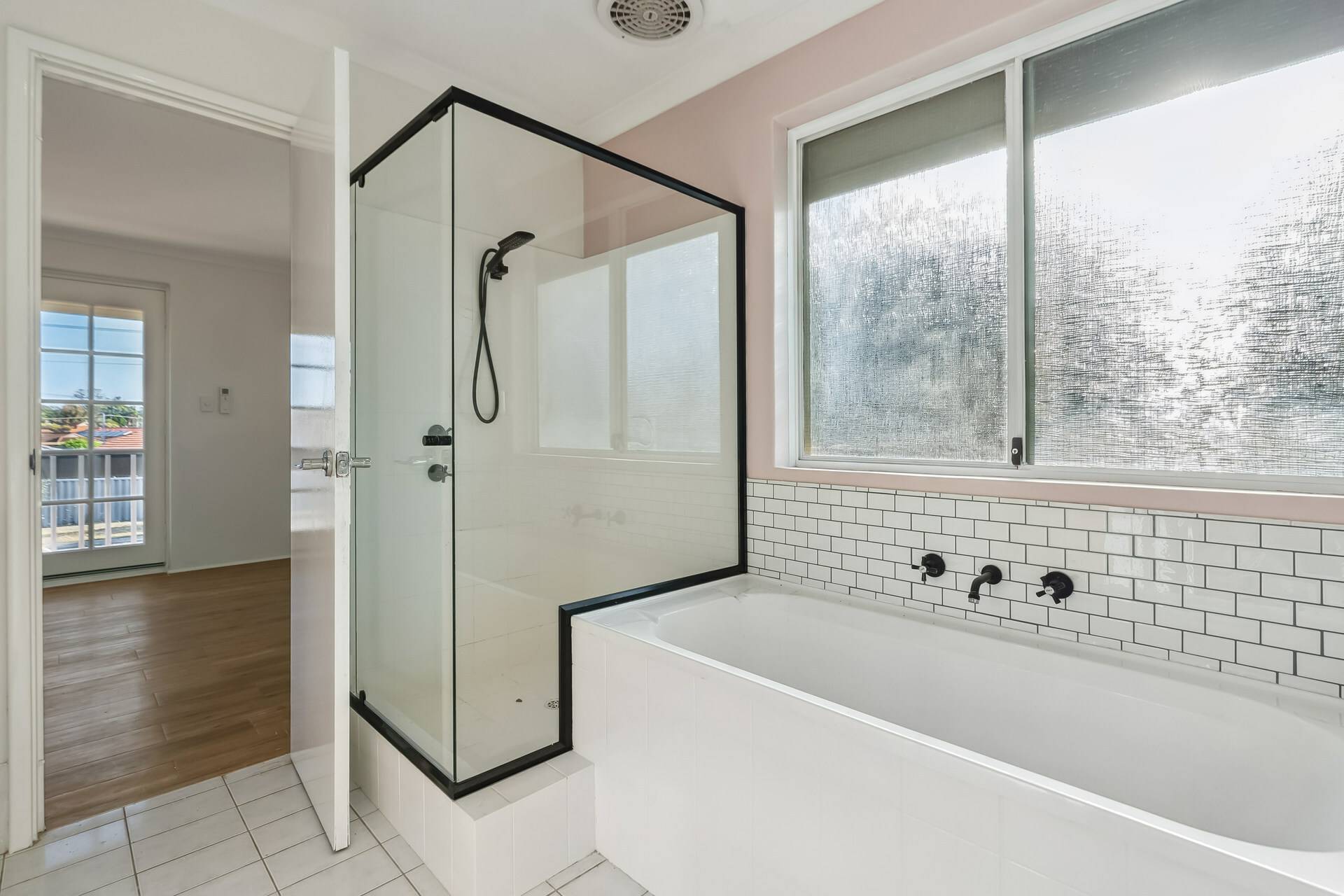 * The spacious master suite features a walk-in robe, semi-ensuite, reverse cycle air conditioning and french doors to balcony