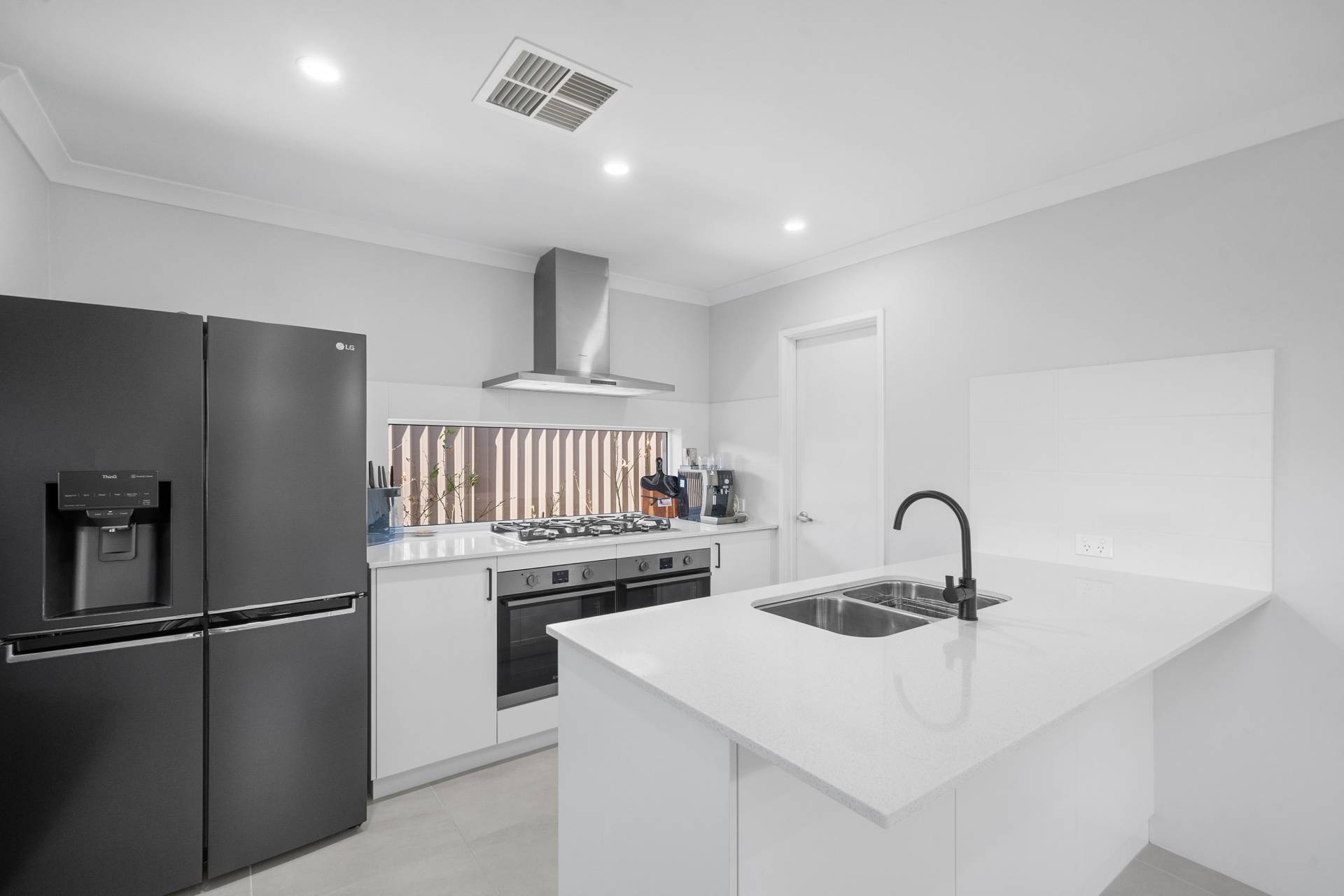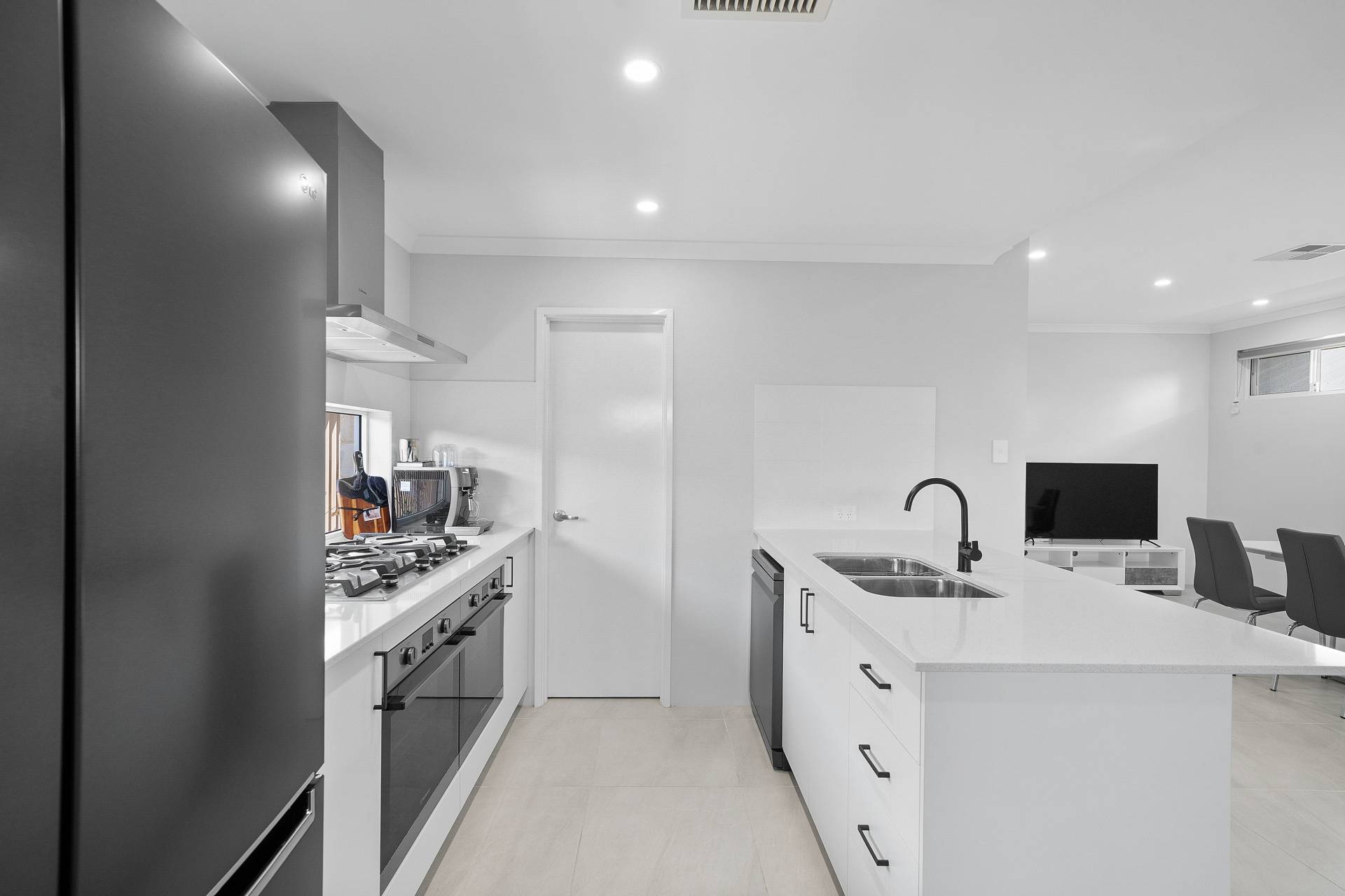 * Equipped with 900mm gas cooktop, two under bench ovens, dishwasher space and stone benchtops