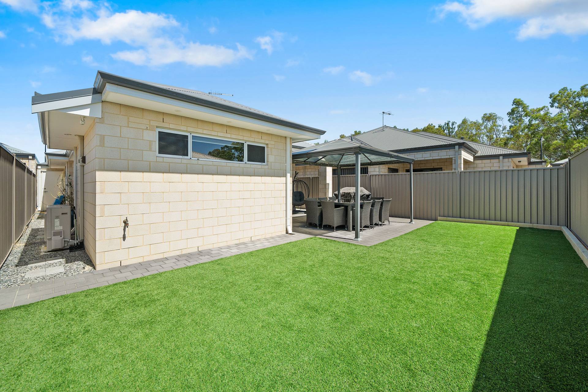 * A lush, green artificial Lawn in the rear for minimal upkeep.