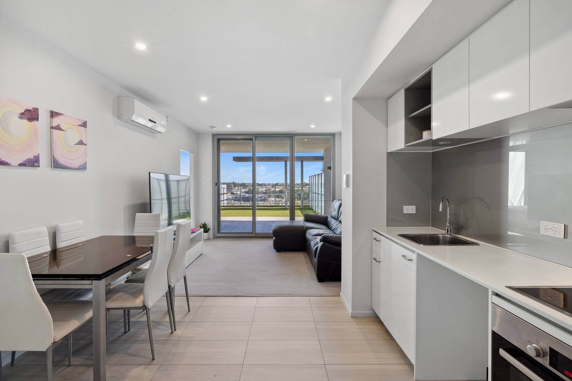 The sleek interior boasts premium finishes, including a gourmet kitchen with soft close cabinetry, reconstituted stone benchtops, chic glass splashbacks and high end Bosch appliances. The open plan living area, equipped with reverse-cycle air conditioning, flows effortlessly onto your private entertainer’s balcony, perfect for hosting or unwinding.