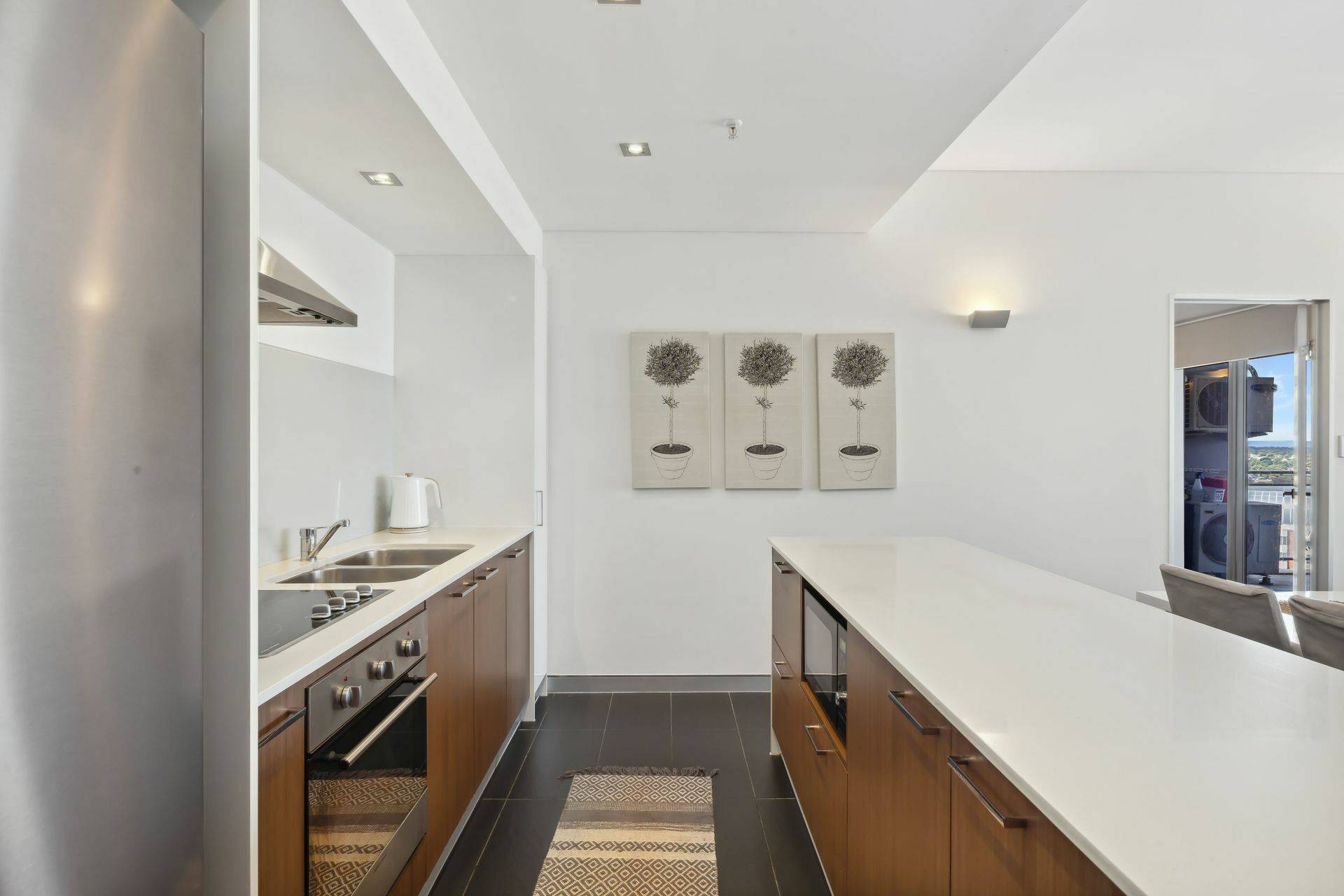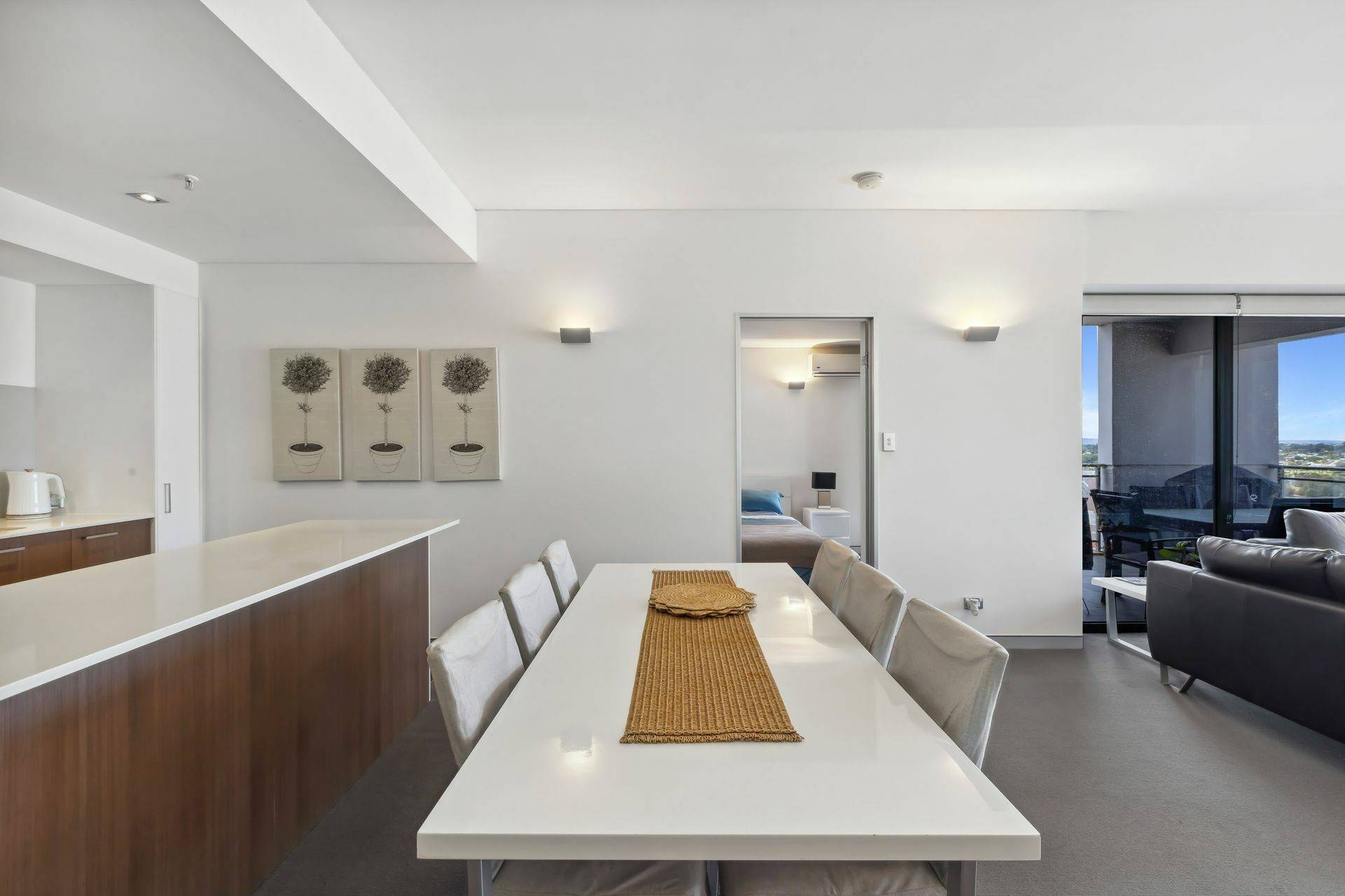 Perched high on level 15, this stunning two bedroom, two bathroom Sky Apartment offers an unparalleled blend of style, comfort and convenience.