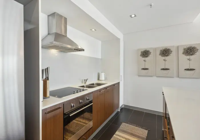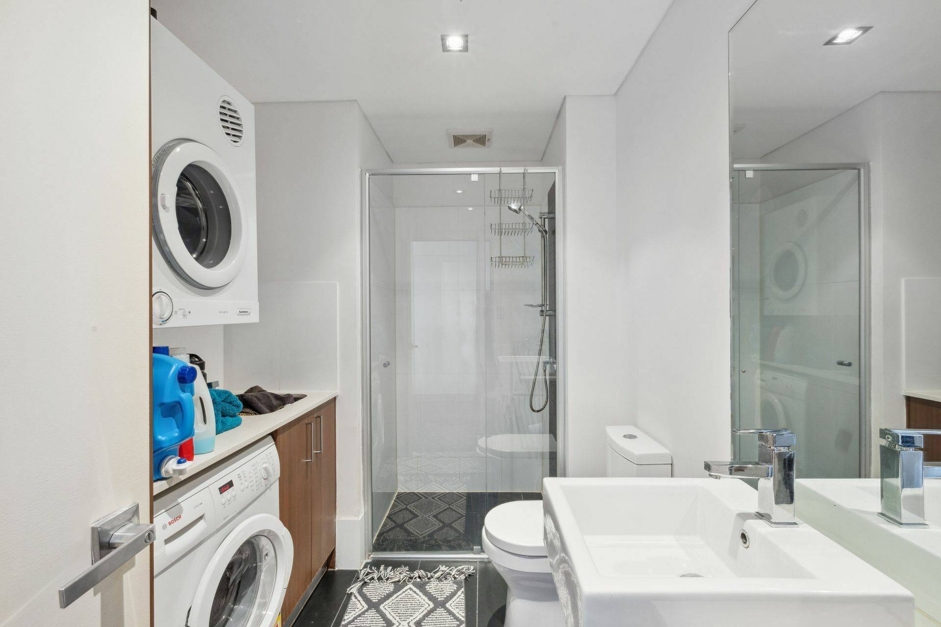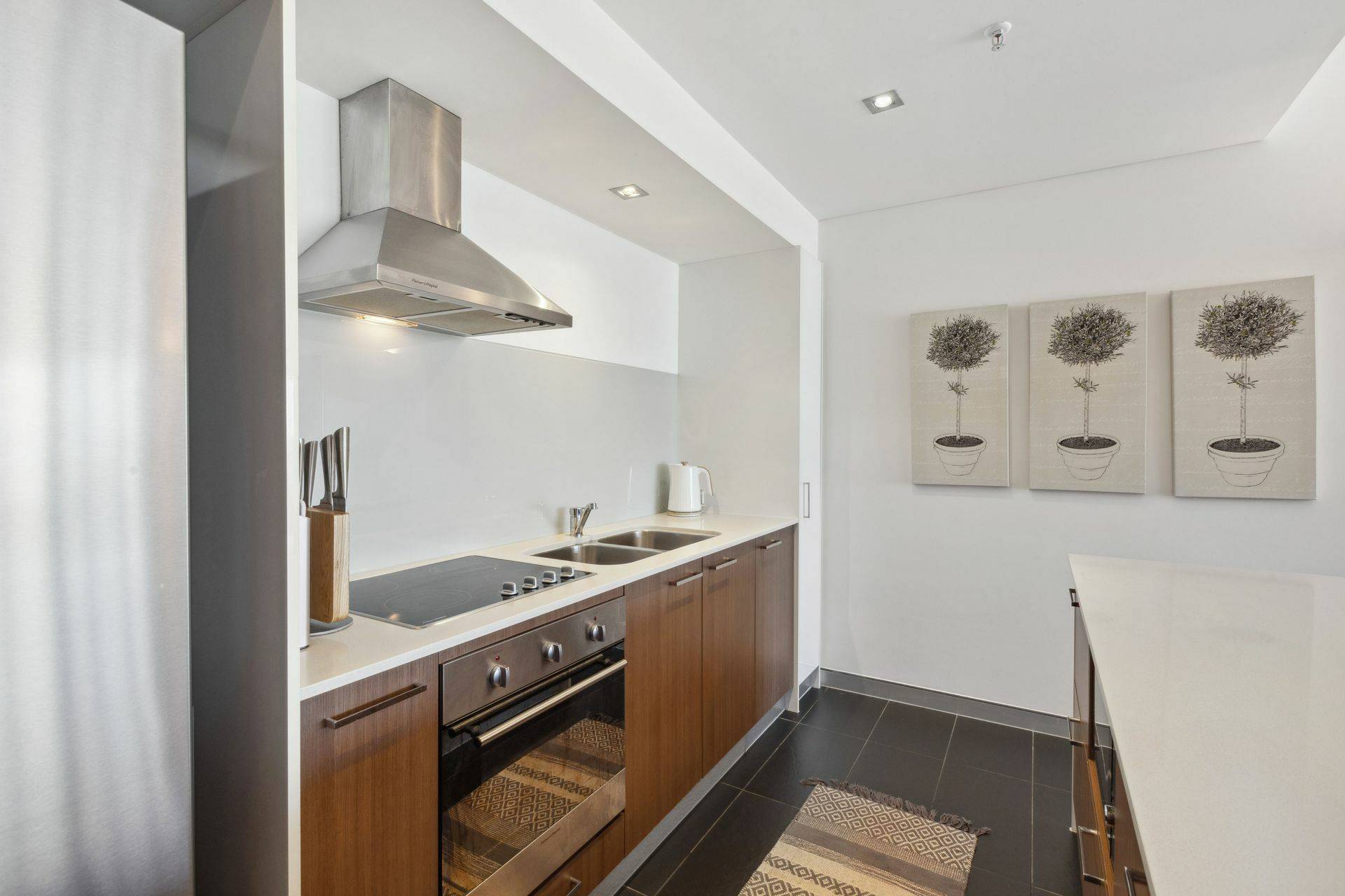 Designed for modern city living, the light filled open plan layout flows effortlessly onto a spacious 20sqm balcony, where you can unwind and take in the incredible skyline. The sleek kitchen is a chef’s dream, featuring stone benchtops, stainless steel appliances and an electric cooktop.