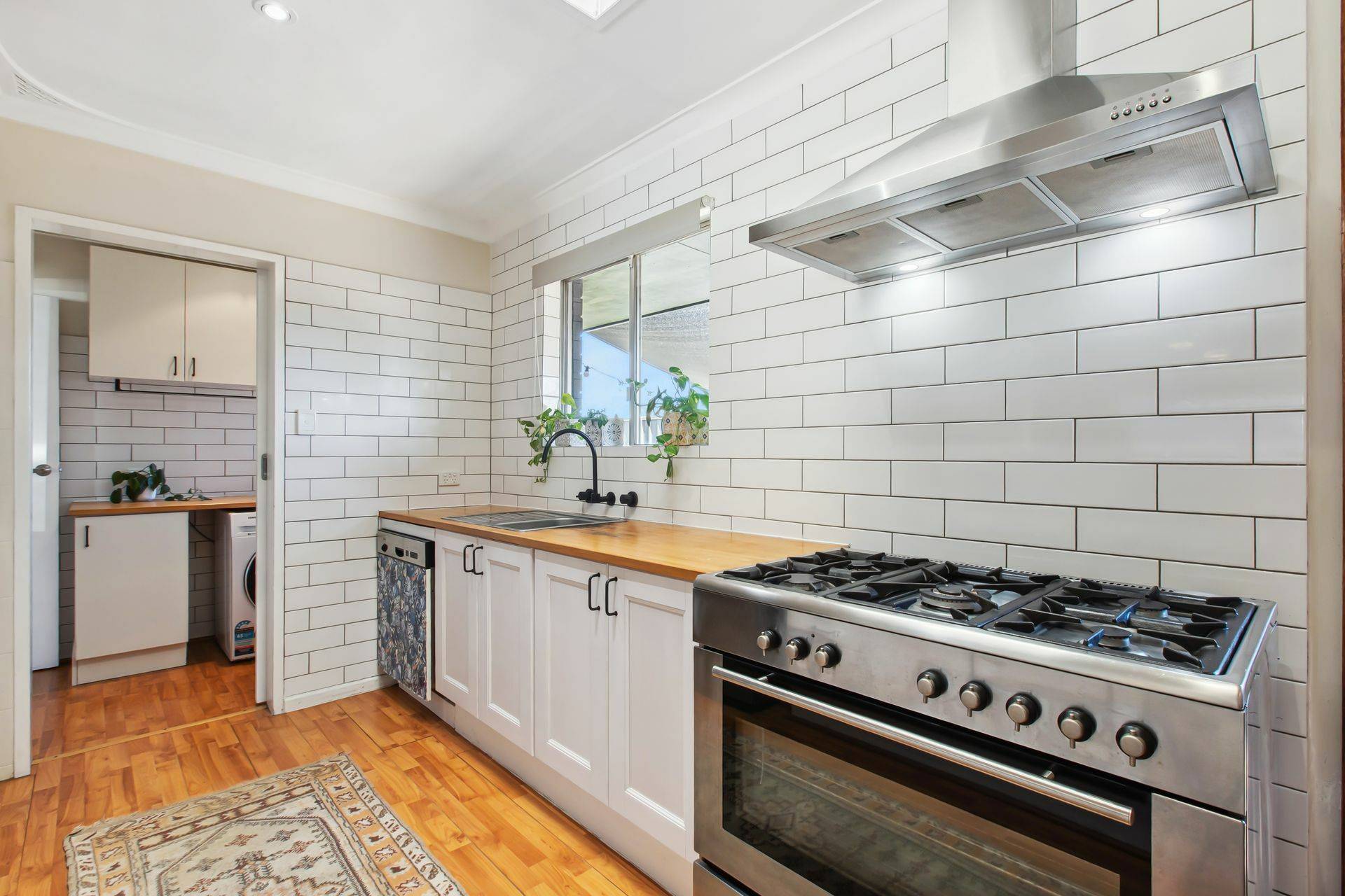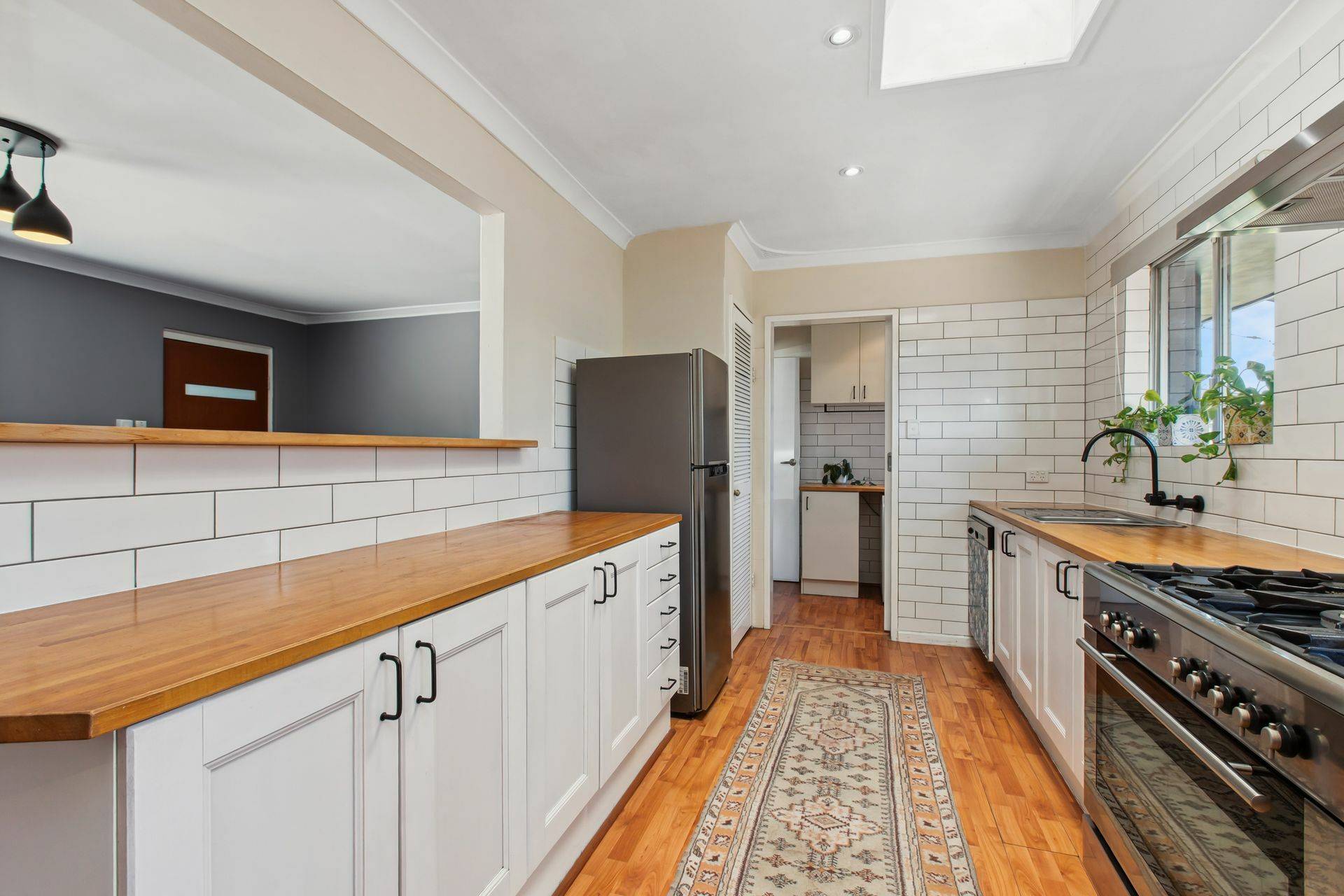 The open plan kitchen is a dream for home chefs, boasting generous bench space, ample storage and a large stainless steel gas stove.