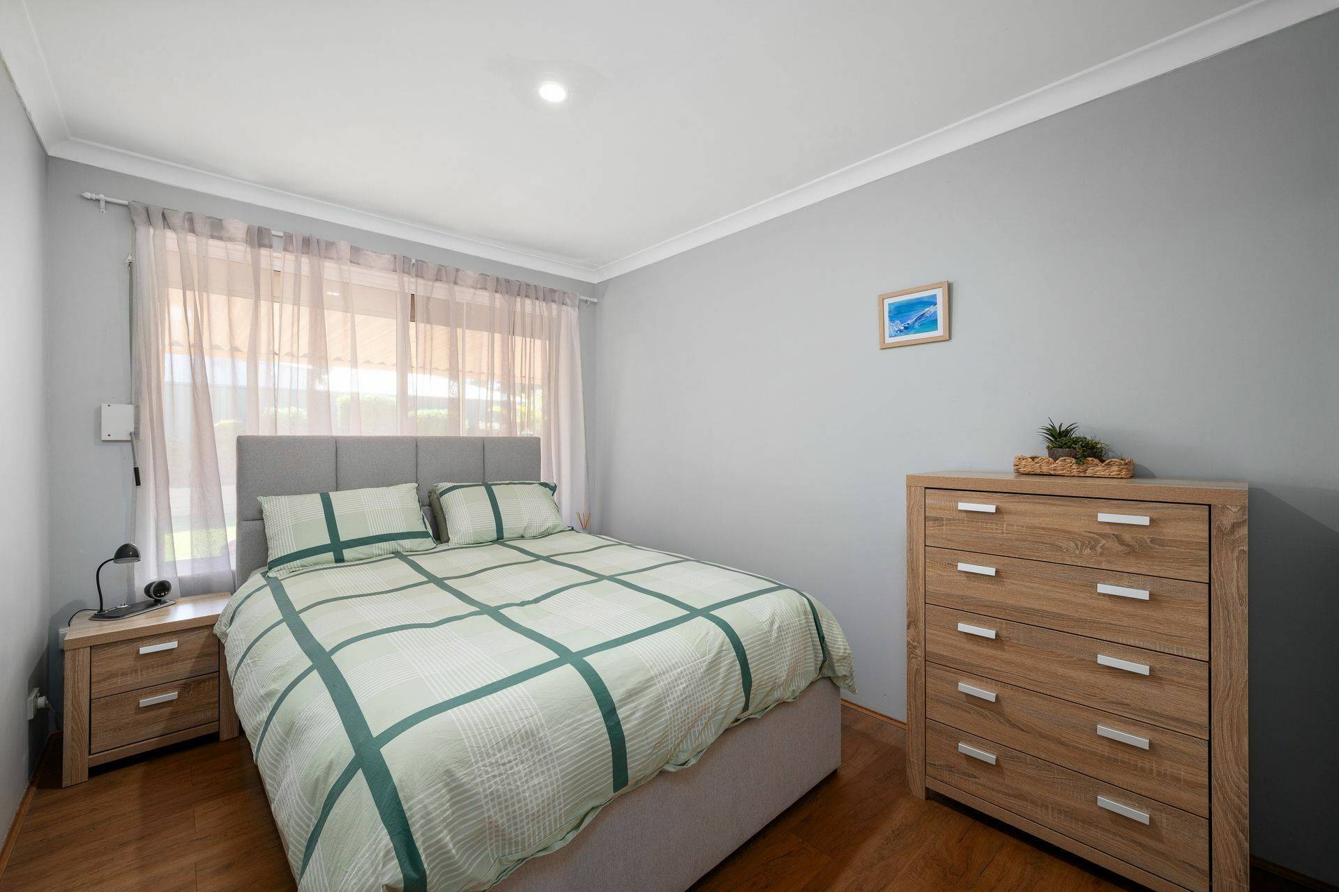 Inside, the thoughtful layout is designed to meet all your family's needs. The open plan kitchen and dining area provide a hub for gatherings, while large front lounge has flexibility to use for relaxation or entertainment. Each bedroom is generously sized with built in robes and the well kept, low maintenance gardens create a serene outdoor oasis along with a full widths undercover patio.