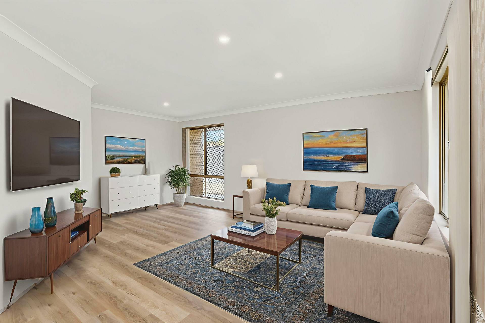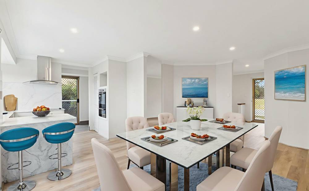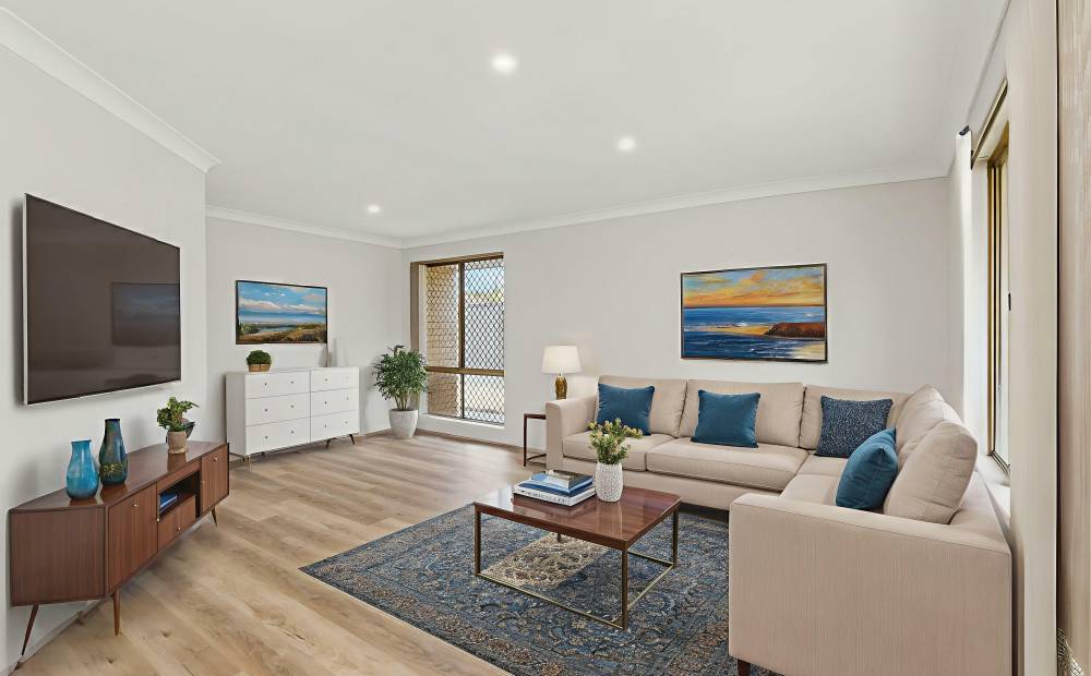 The living areas are bright and inviting, with a comfortable layout that flows seamlessly into the dining and kitchen spaces. All bedrooms are generously sized, offering flexibility for family, guests or a home office.