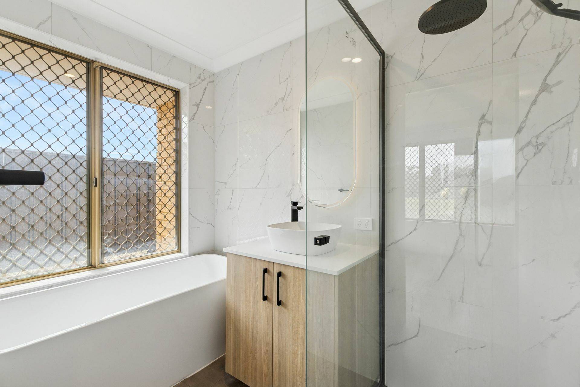 * Renovated bathroom with illuminated mirror, new vanity, shower and deep relaxing bath