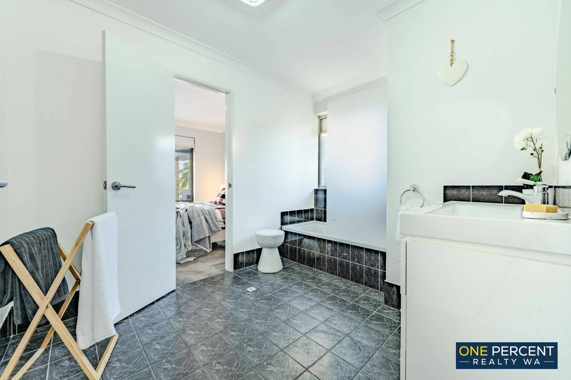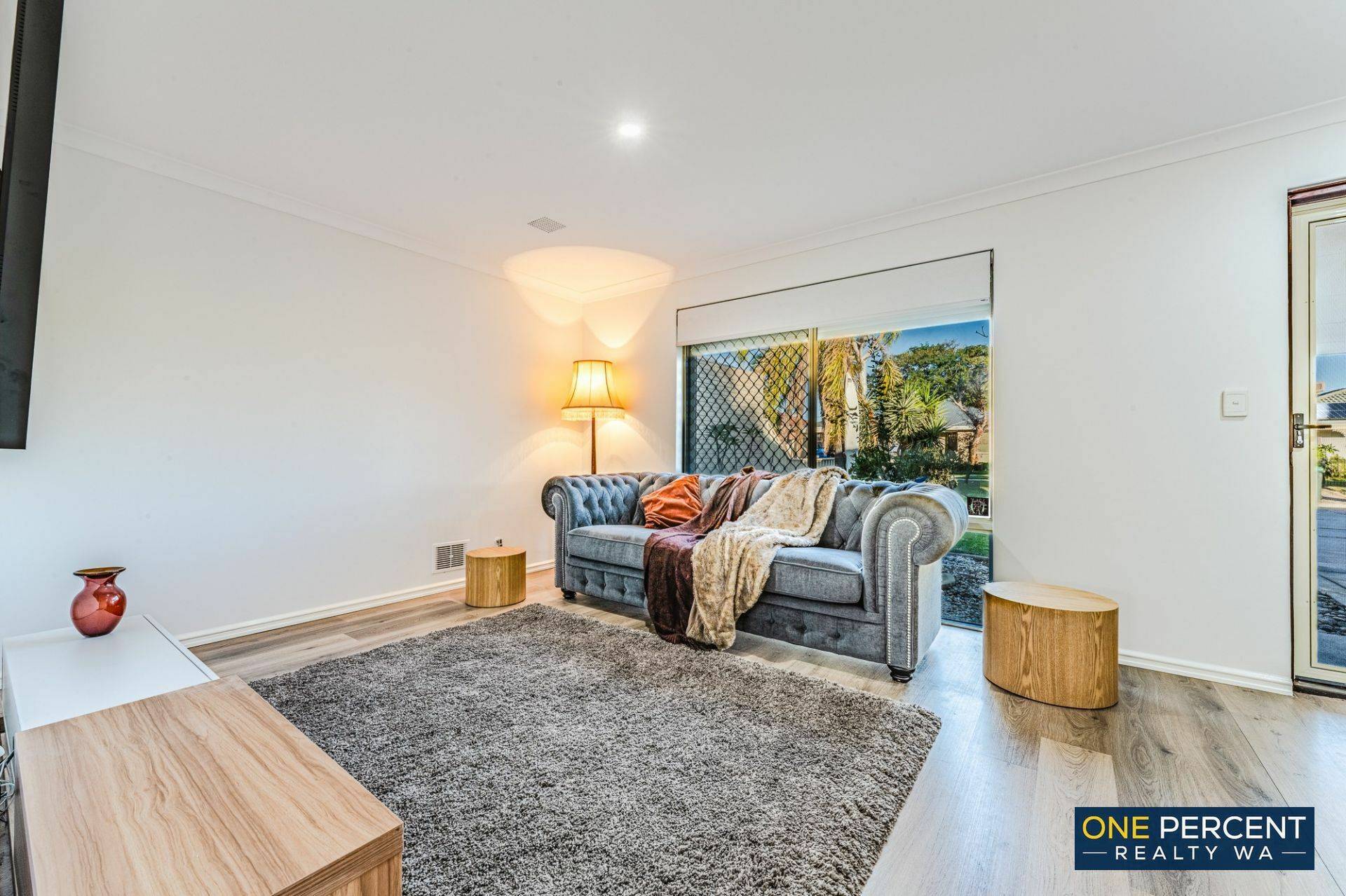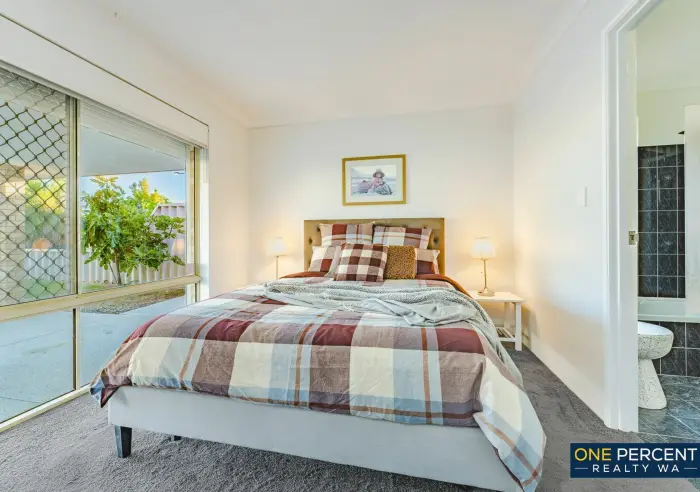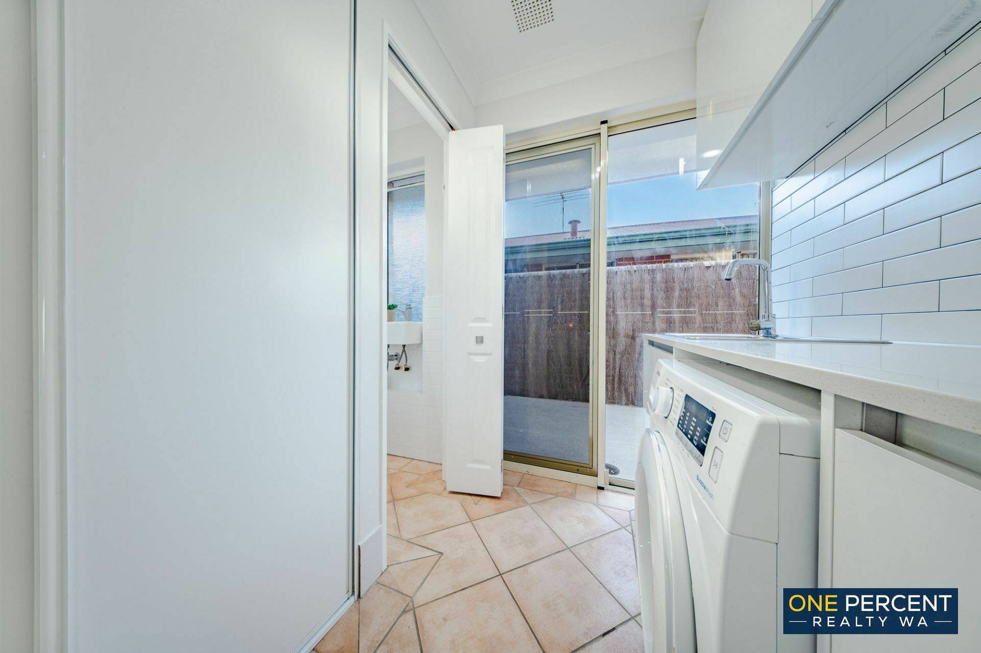 The thoughtfully redesigned open plan layout creates a welcoming and inviting atmosphere, anchored by a stunning kitchen featuring stone benchtops, gas cooking and striking marri wood shelving with natural edges. Opposite the kitchen, the custom designed laundry continues the premium feel with matching stone tops, ample cabinetry, pull out hamper, broom cupboard and generous linen storage.