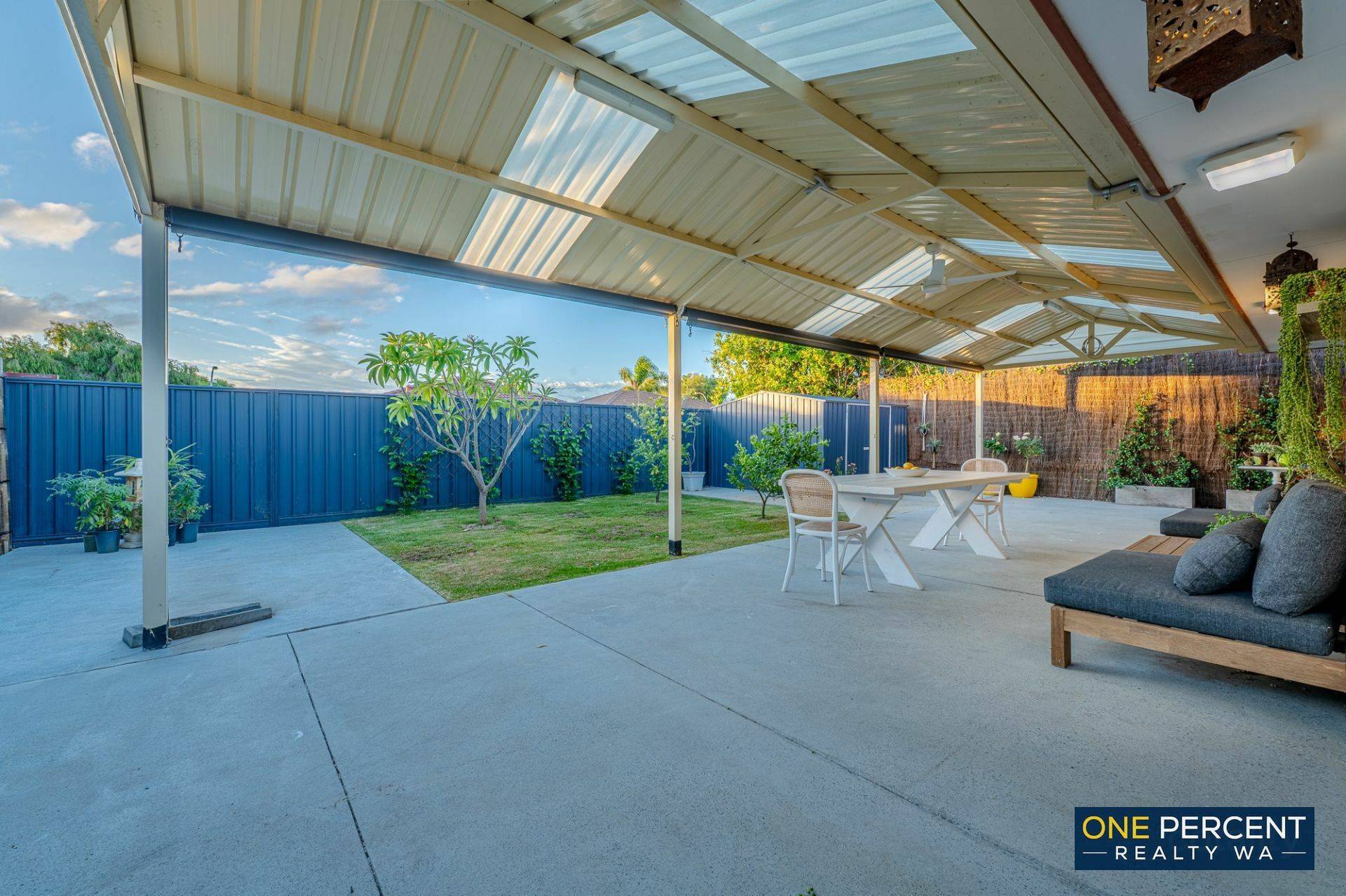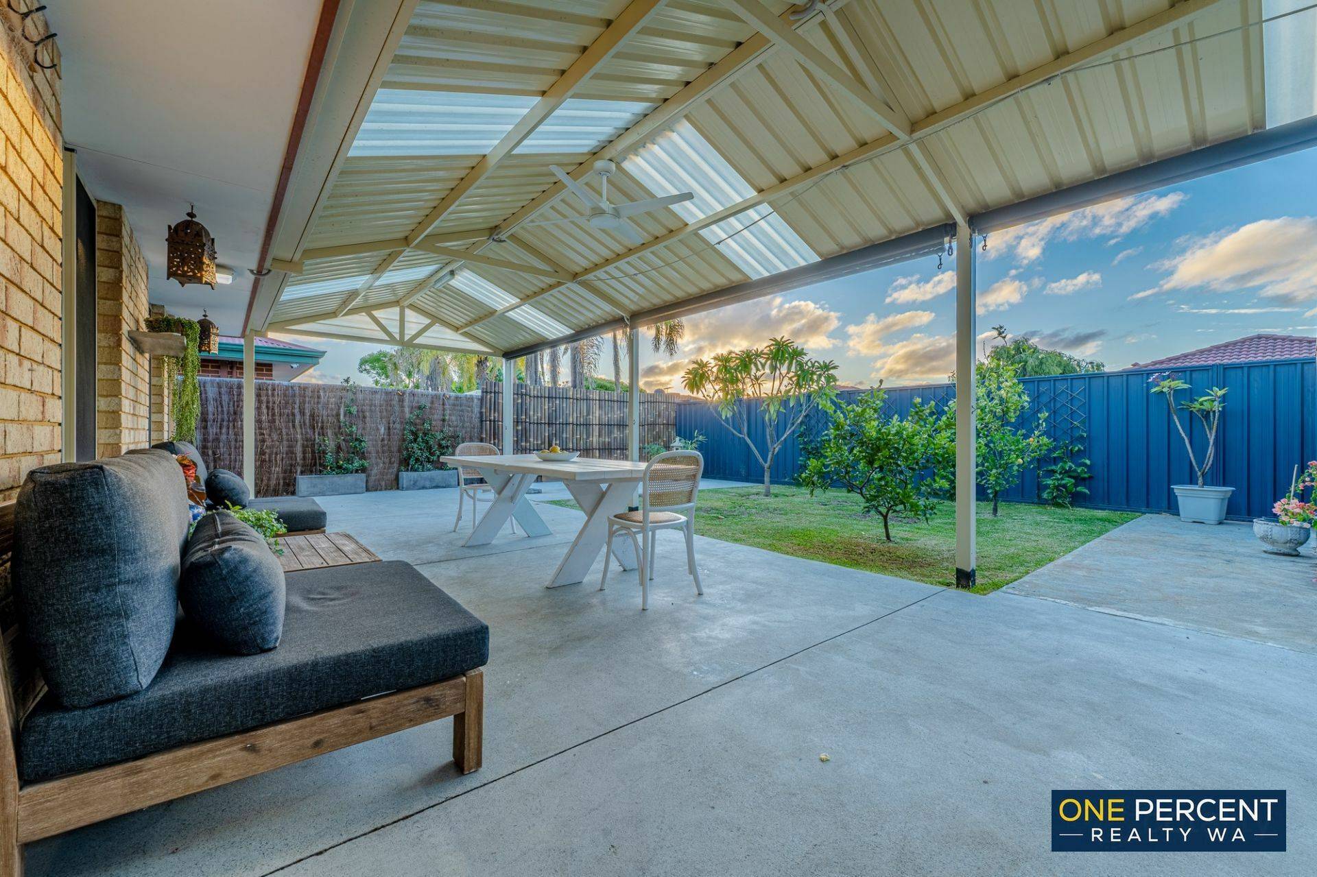 * Expansive undercover alfresco with ceiling fan