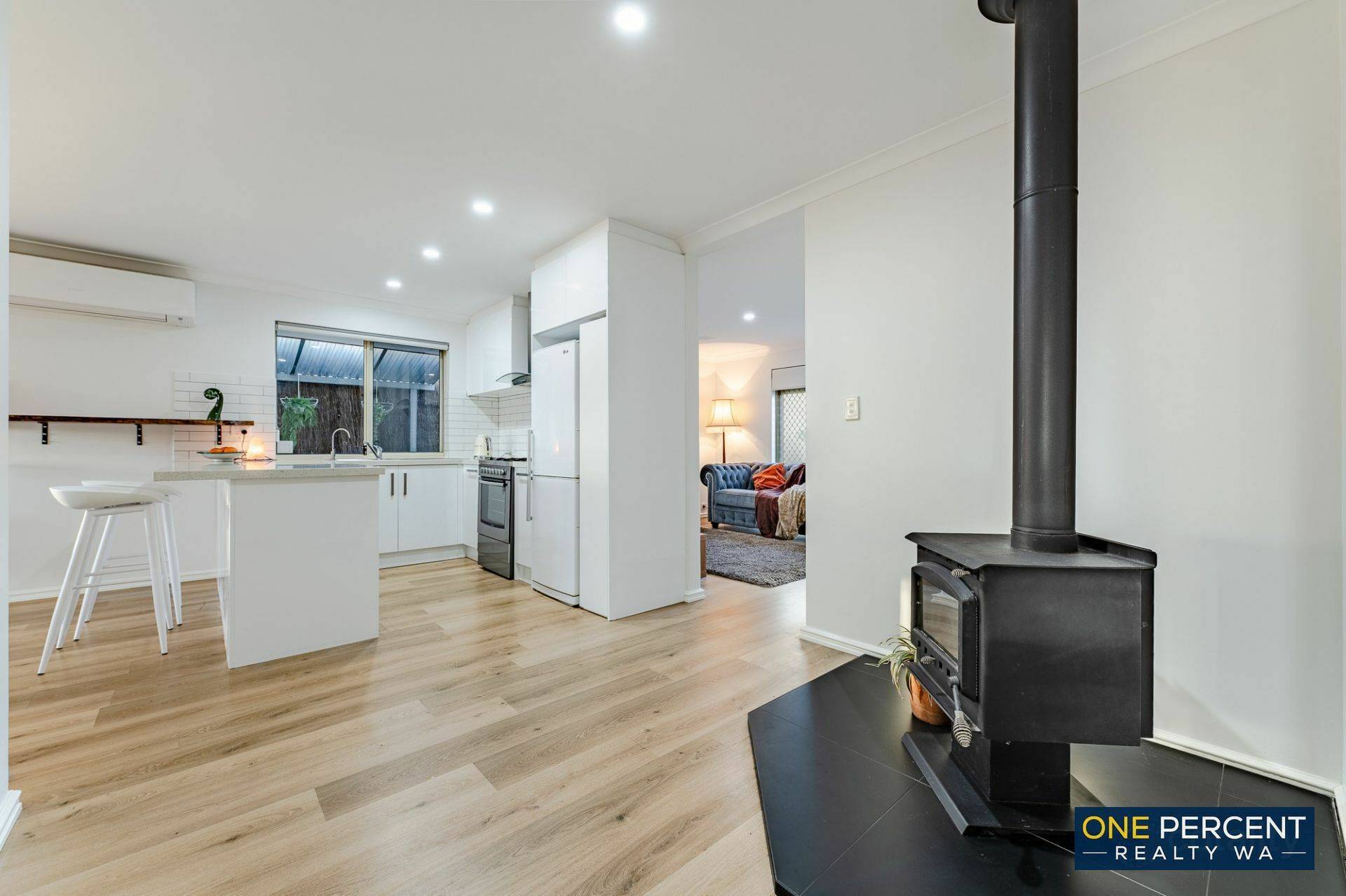 At the heart of the home, the relaxed warmth of the wood burner pairs perfectly with the large split system air conditioner, ensuring year round comfort.