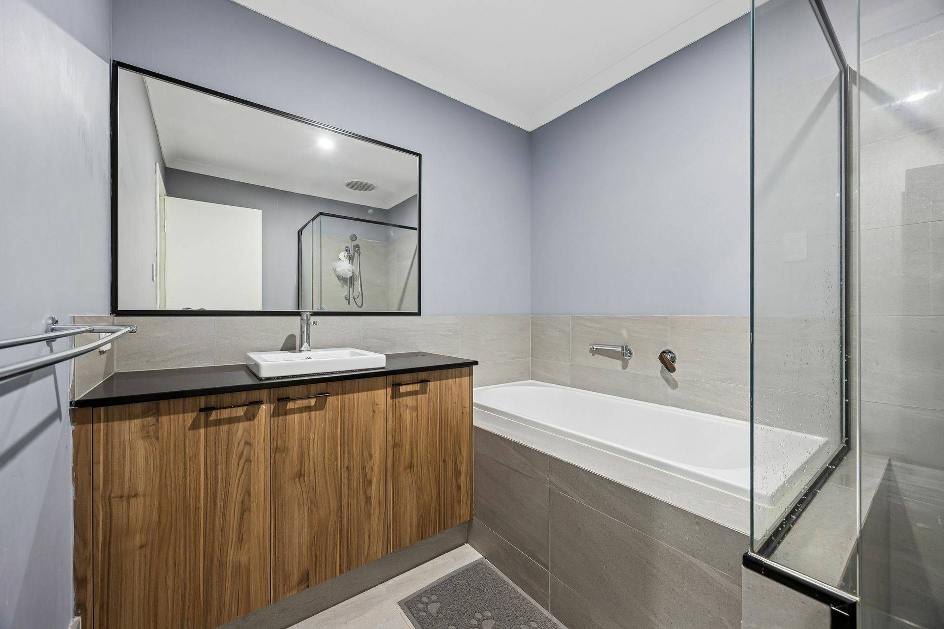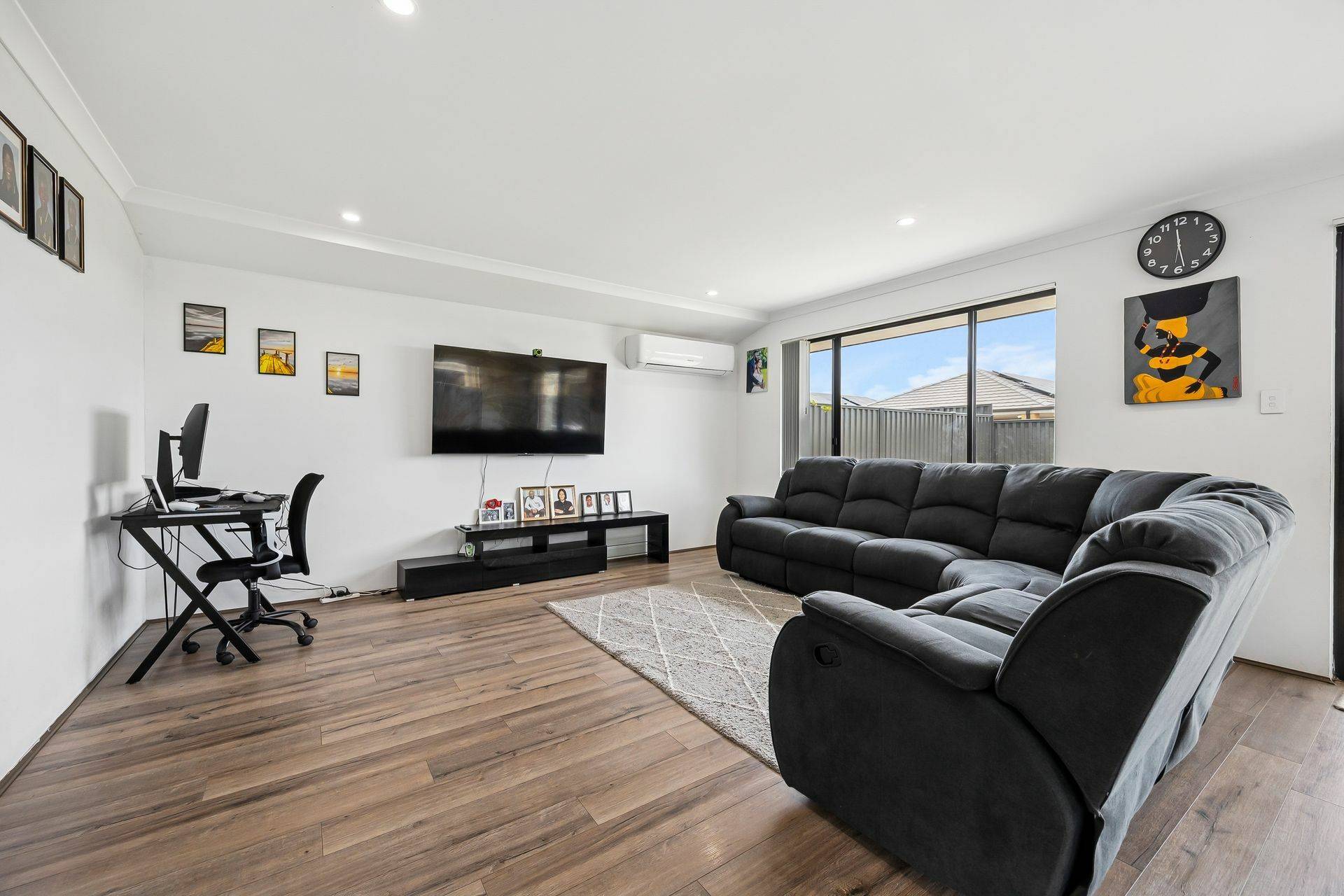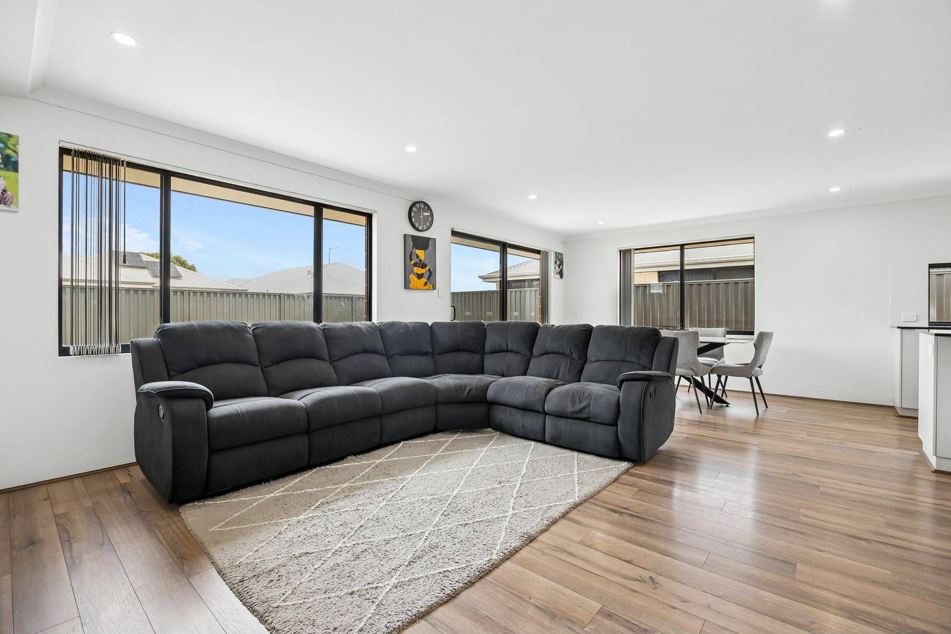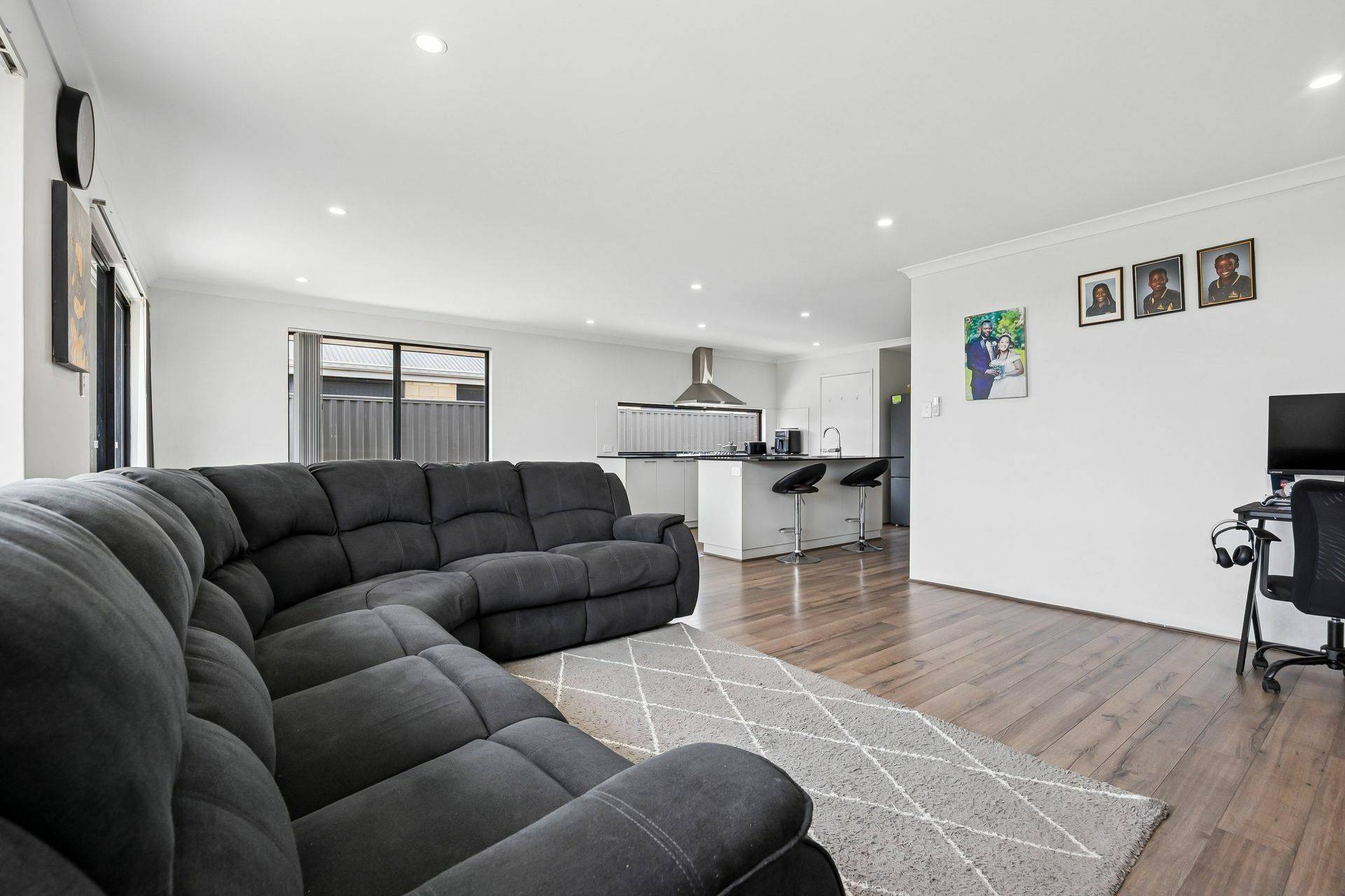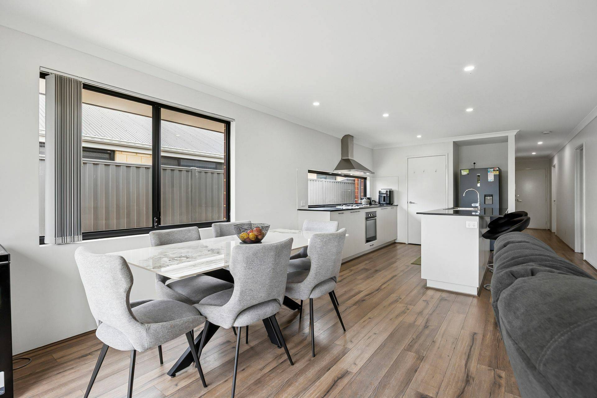 Tucked away in a quiet pocket of Hilbert on a well balanced 336sqm block, the home offers an easy, practical floorplan with generous open plan living and a stunning gallery kitchen that truly anchors the home with a feature splashback window that fills the space with natural light.