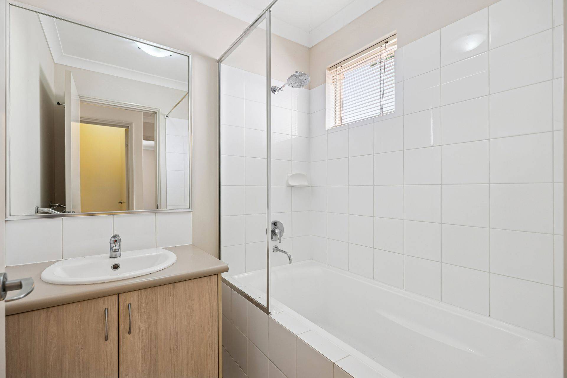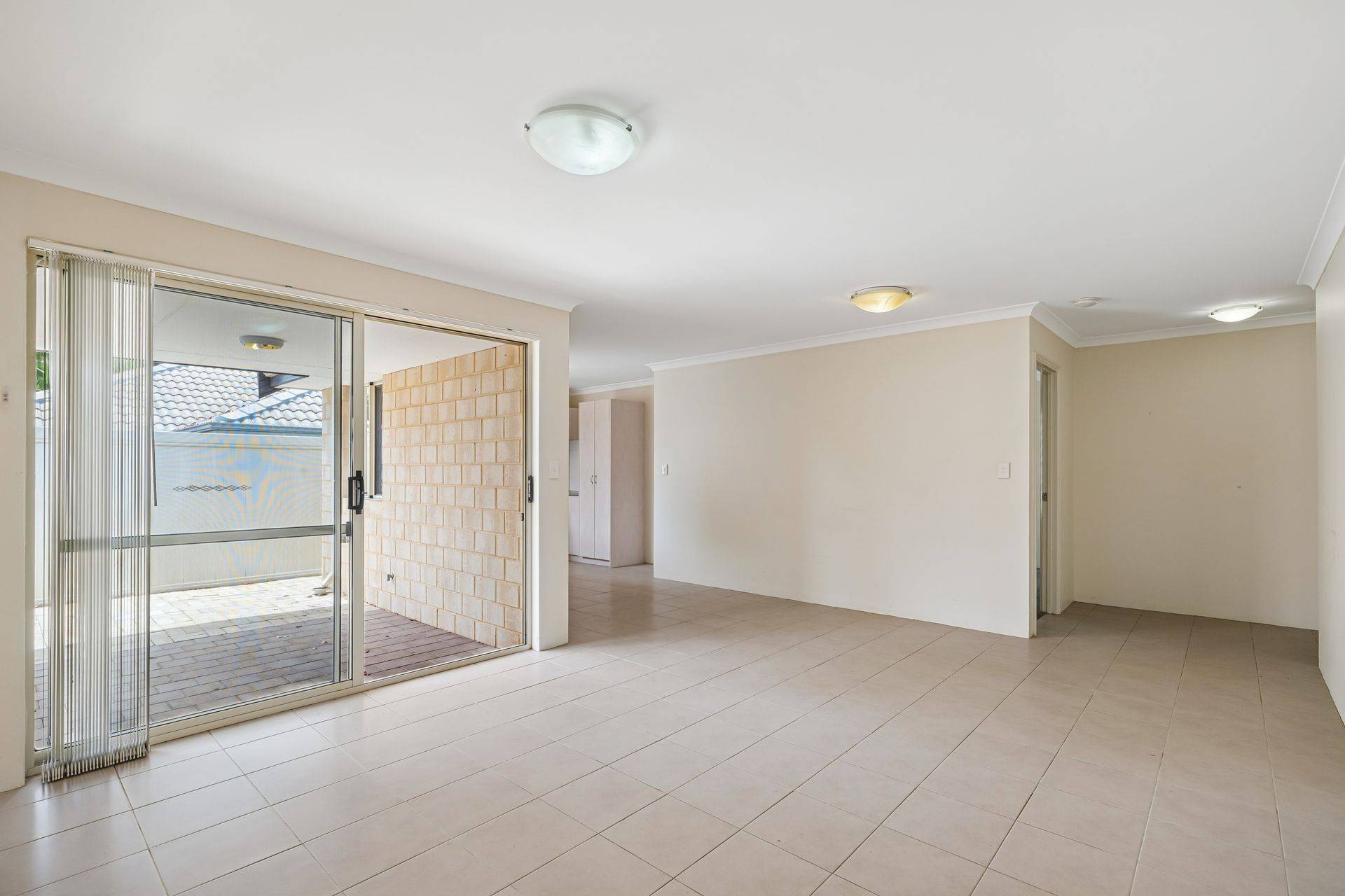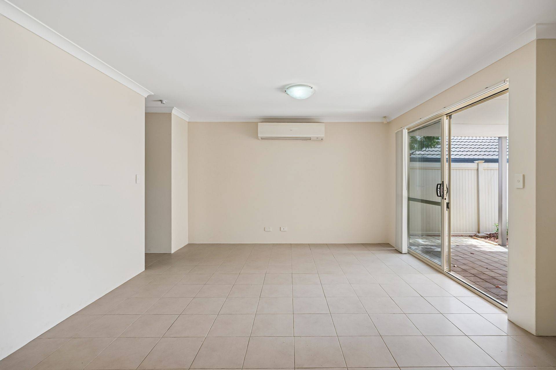 Inside, a fresh, welcoming interior features new carpet, fresh paint, and vertical blinds throughout. High ceilings and an abundance of natural light create a bright, airy atmosphere, complemented by tiled floors in the main living areas and split system heating/cooling for year-round comfort.