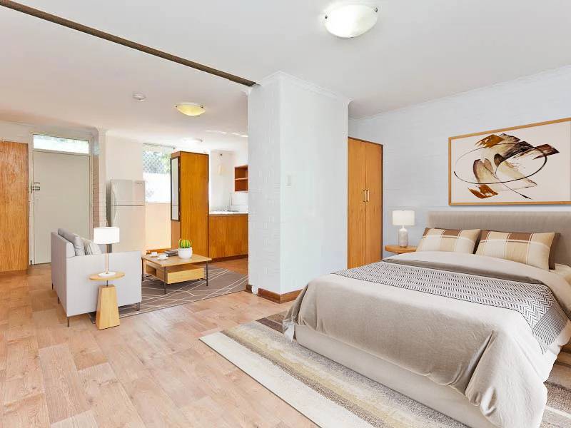 Perched on the top floor in a secure group, this 1 bedroom studio style unit enjoys leafy park views and a superb Subiaco/West Leederville location.