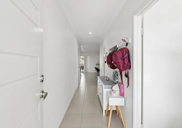 The kitchen sits at the heart of the home and includes a large breakfast bench, stone benchtops and 900mm stainless steel appliances, overlooking the spacious living and dining area. Step outside to the covered alfresco – perfect for entertaining while enjoying the low maintenance backyard.
