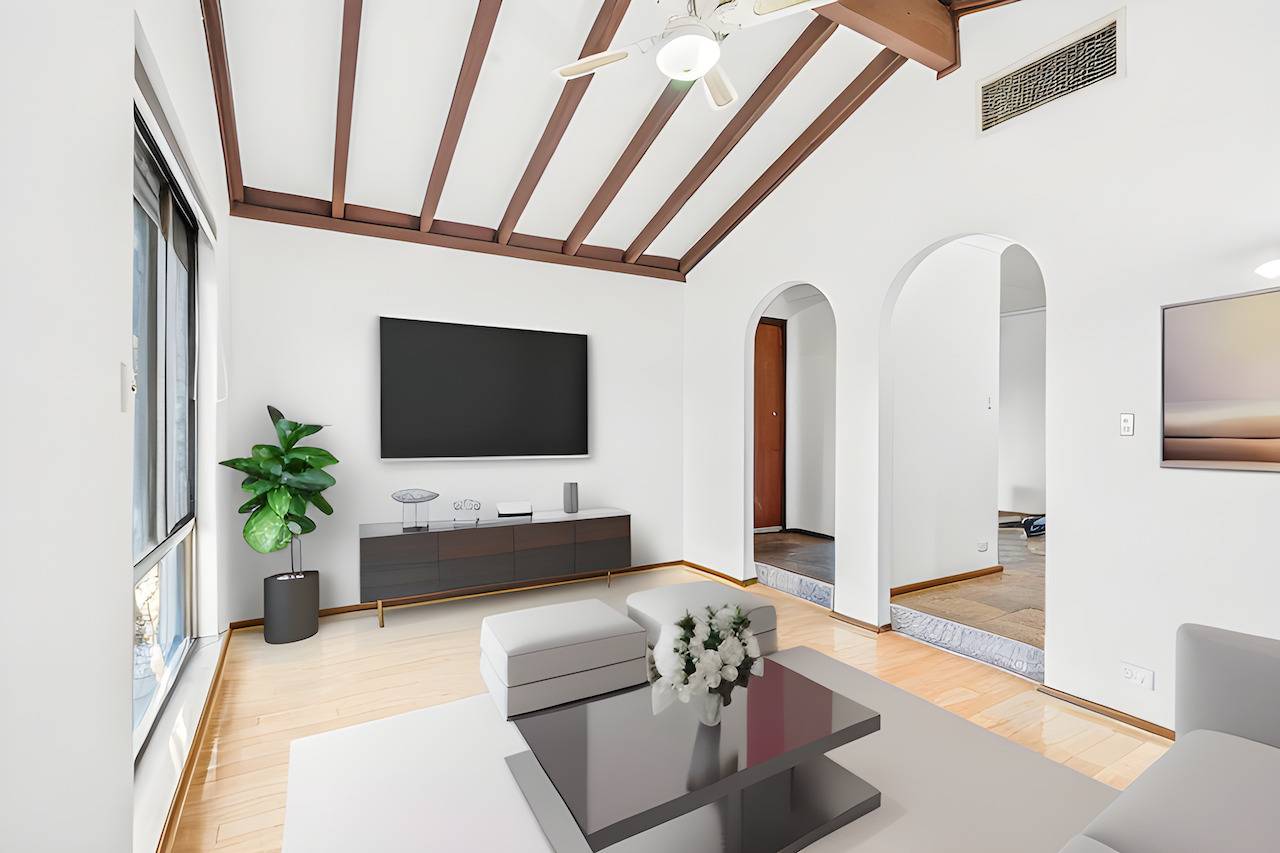 * Sunken formal lounge room with vaulted high ceiling and bamboo flooring