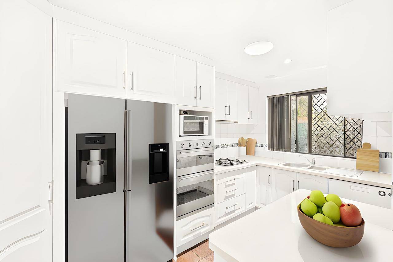 * Well-appointed kitchen with ample cupboard space and a convenient breakfast bench