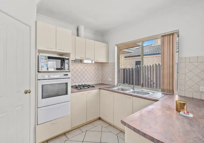 * Well-appointed kitchen with ample cupboard space and a convenient breakfast bench