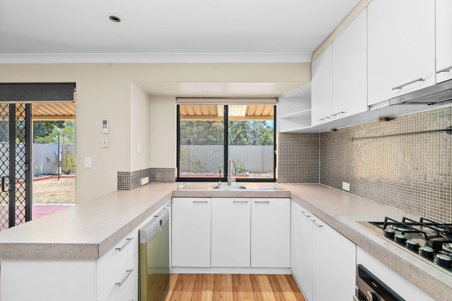* Modern Kitchen: Includes a pantry, overhead cupboards, stainless steel under-bench oven, gas cooktop, and dishwasher.
