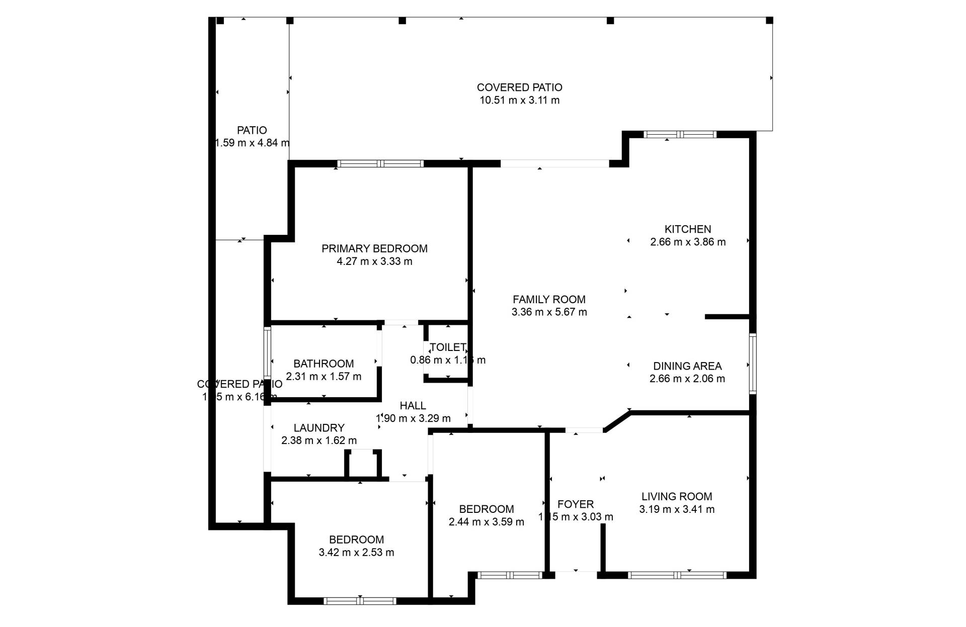 * Three Bedrooms: Generously sized for comfort and functionality.